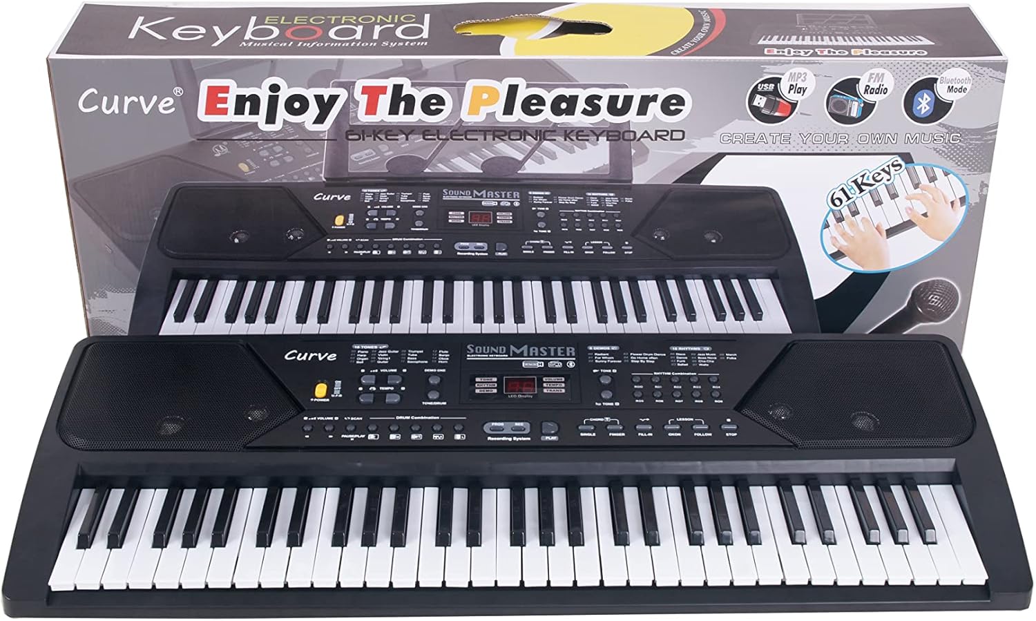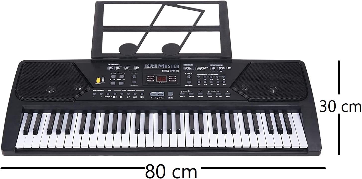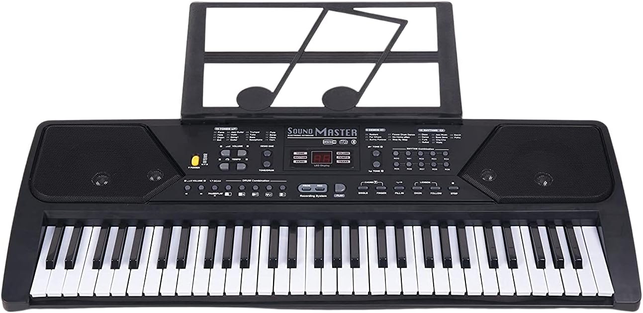 🎹 Multi-functional - This electric keyboard has LED display, Bluetooth mode, FM Radio, MP3 player, 6 demo song, 16 tones,10 rhythms, 5 percussions, Lesson mode, Record, Volume, Tempo, Single, Finger chord