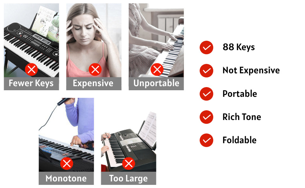 Standard 88 Keys: 88 keys standard piano keys, the piano feel, can achieve the same performance effect as the actual grand piano.