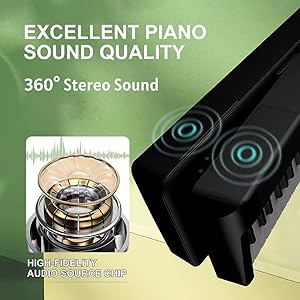 HiFi Stereo Sound: Electric keyboard piano adopts 360 degree surround stereo sound, and the piano sound quality is more detailed and moving.