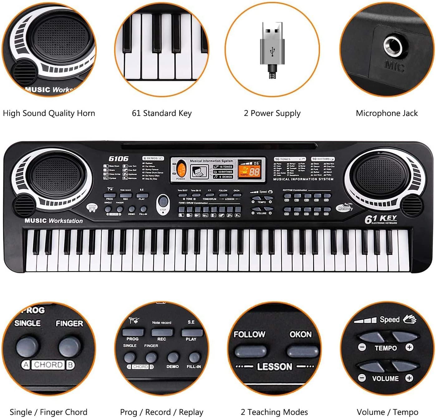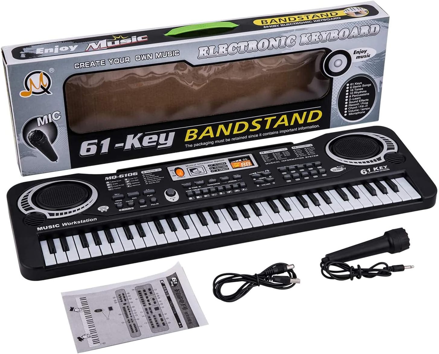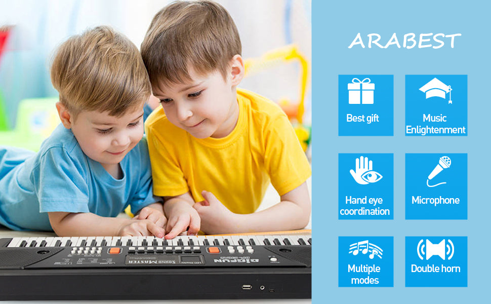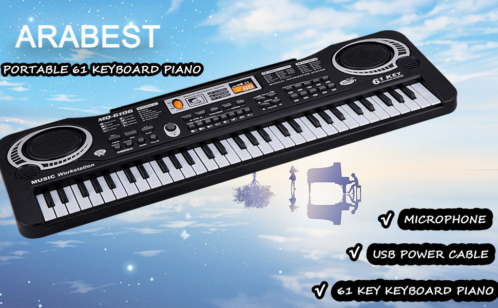 Arabest 61 Keys Electronic Keyboard Digital Children Music Instrument Gift Electric Piano Gift with Microphones