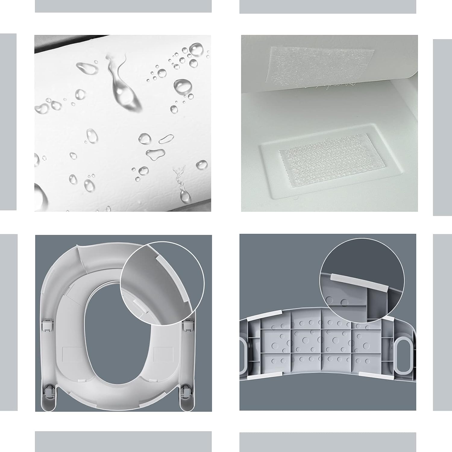 🚽COMPATIBLE WITH MOST TOILETS: The toilet seats is suitable for V-shaped, U-shaped and O-shaped toilets. The foldable design makes the training potty easy to move, so you can put the toddler toilet seat aside when you don't need it.