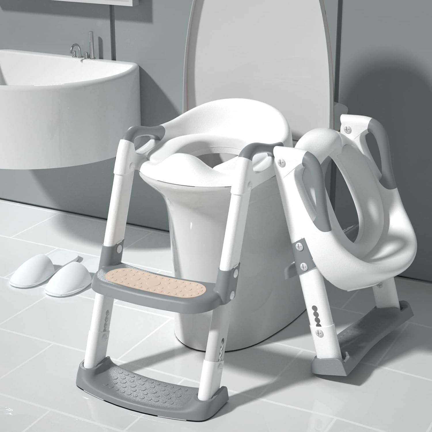 Toilet Potty Training Seat with Step Stool Ladder, GDTOMEEU Potty Training Toilet for Kids Boys Girls Toddlers-Comfortable Safe Potty Seat with Anti-Sli (Grey)