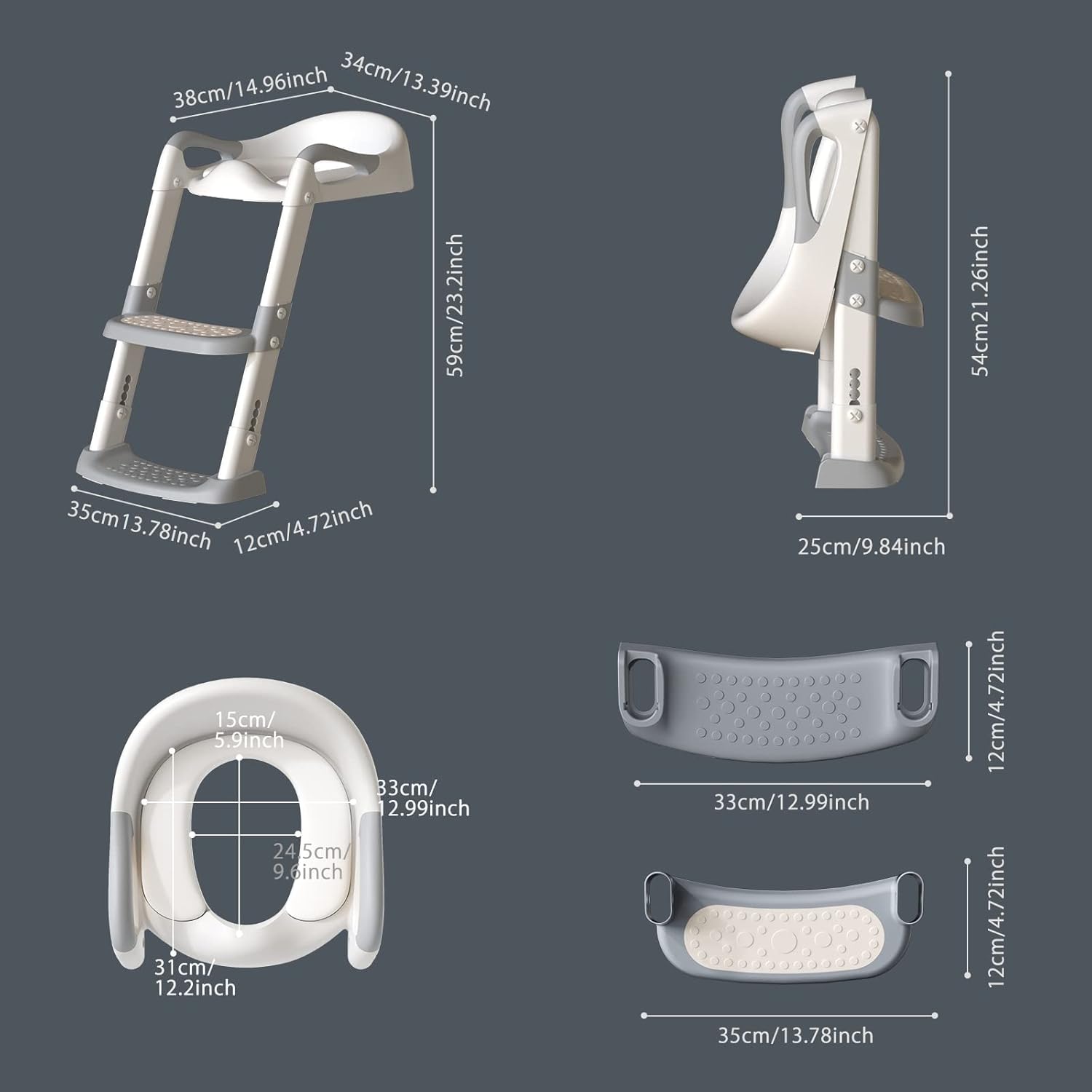 🚽SAFE AND NON-SLIP: This potty training seat is made of safe PP material with a maximum load capacity of 75 kg (165 lbs). The non-slip rubber pad is designed to effectively prevent children from slipping. The wider anti-slip ladder makes it easy for babies to turn around.