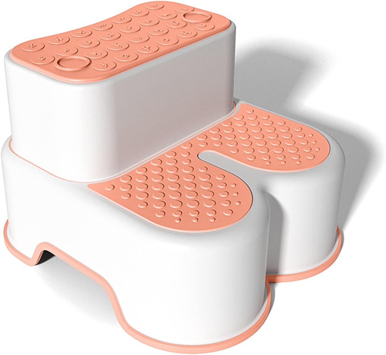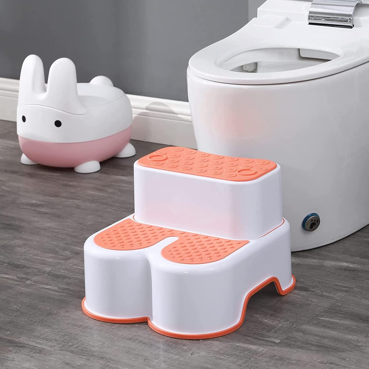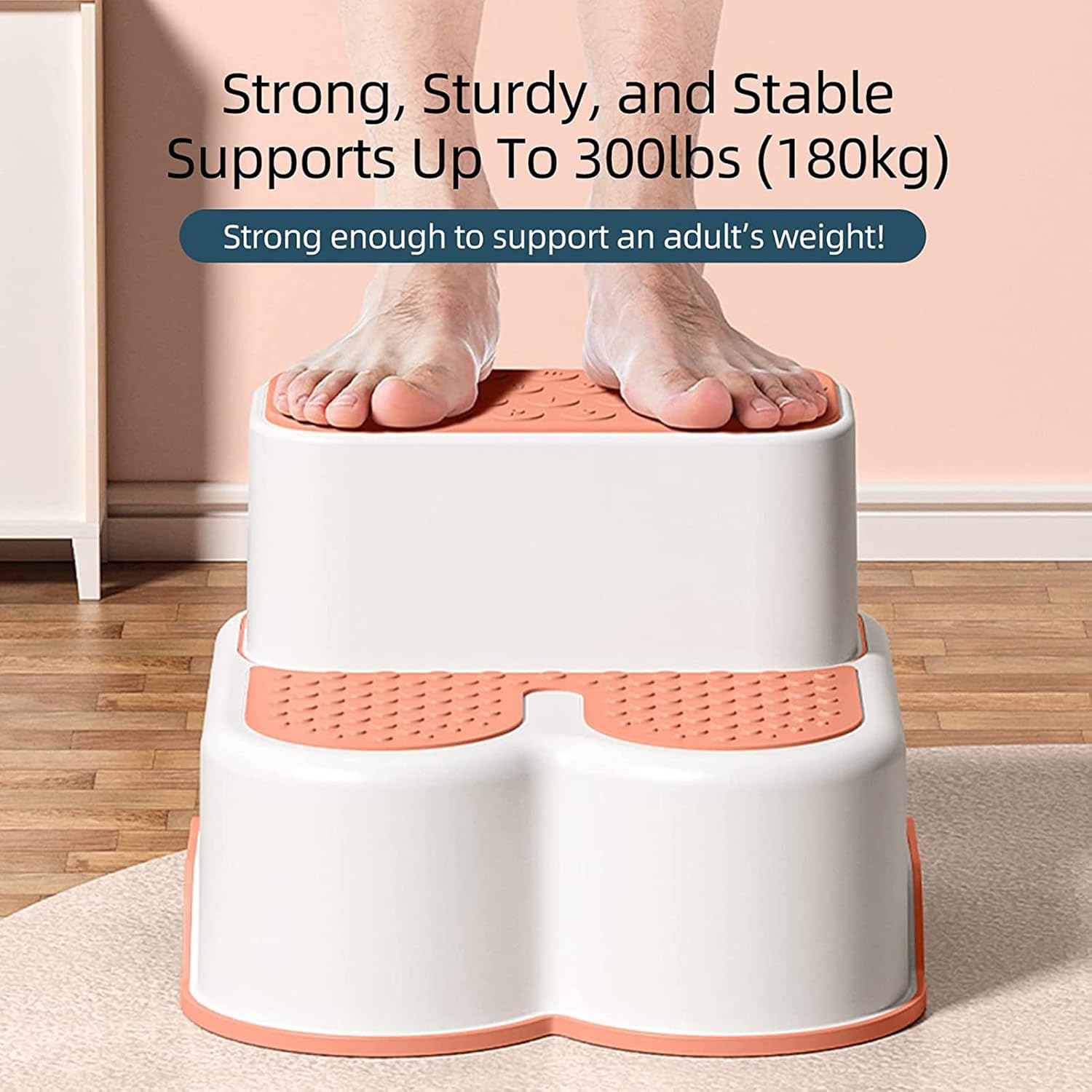 SAFE AND STURDY, it features high-quality anti-slip rubber bottom that guarantees a secure floor grip. Both stools also have a soft grip stepping surface on top that is safe and comfortable for your little one to use. So whether your child needs to go potty, brush their teeth or wash hands at the sink, or reach high counters in the kitchen, you can always count on this step stool to keep them safe.