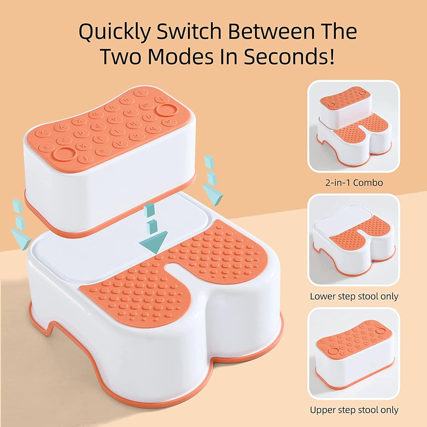 U-HOOME 2 in 1 Step Stools for Kids and Adults, Toddler Step Stool for Toilet Potty Training, Detachable Potty Stools with ABC and Handles, Anti-Slip Stackable Double Up Two Foot Step Stool (Orange)