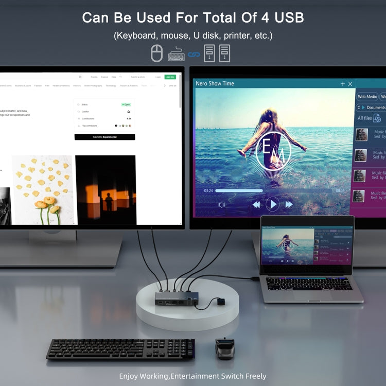 2 In 1 Out 4K 60Hz KVM HDMI Switch USB Swltch Splitter Box HUB(Silver Gray)