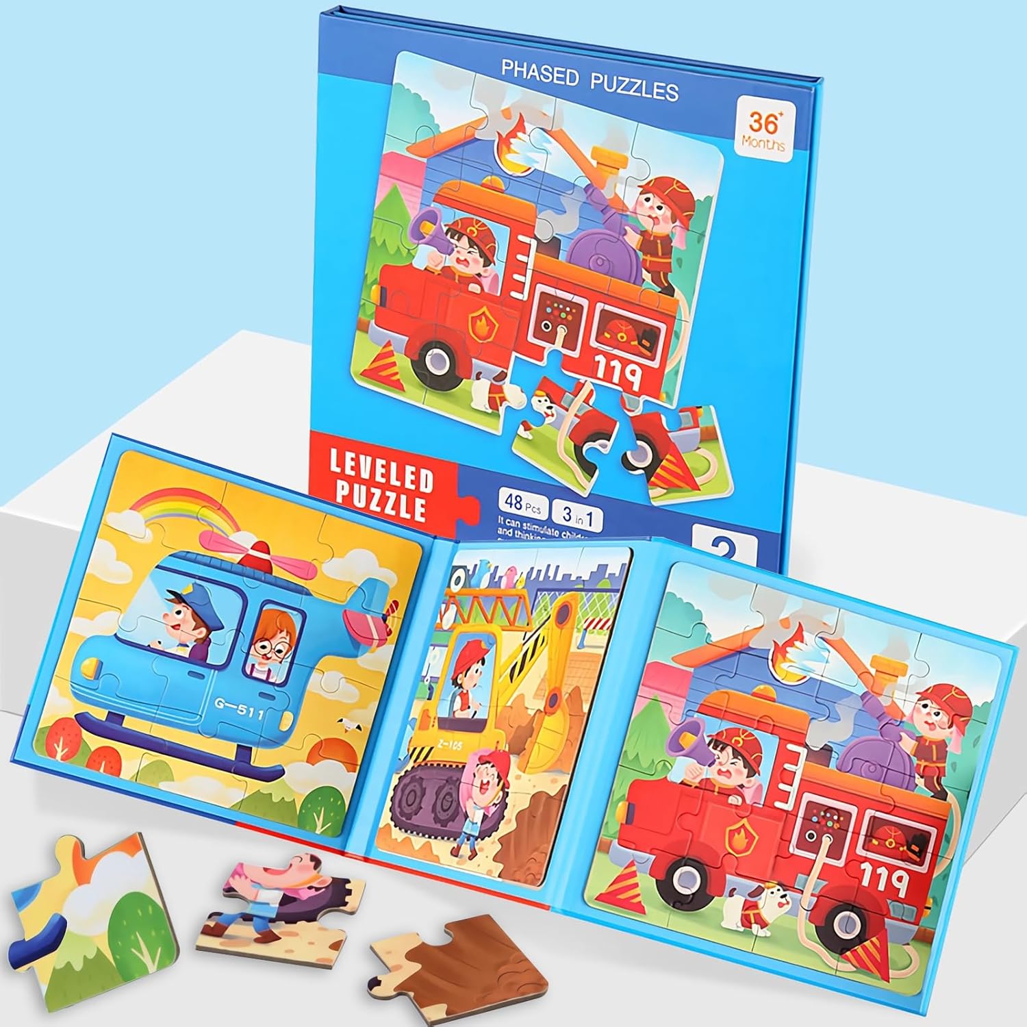 EYSOO Magnetic Jigsaw Puzzles 3 Pack Jigsaw Puzzle Books Magnetic Puzzles for Kids 12+16+20 PCS Jigsaw Puzzles for Toddler Portable Travel Magnetic Puzzle Toy for 3+ Kids Boys Girls (Level 2-A)