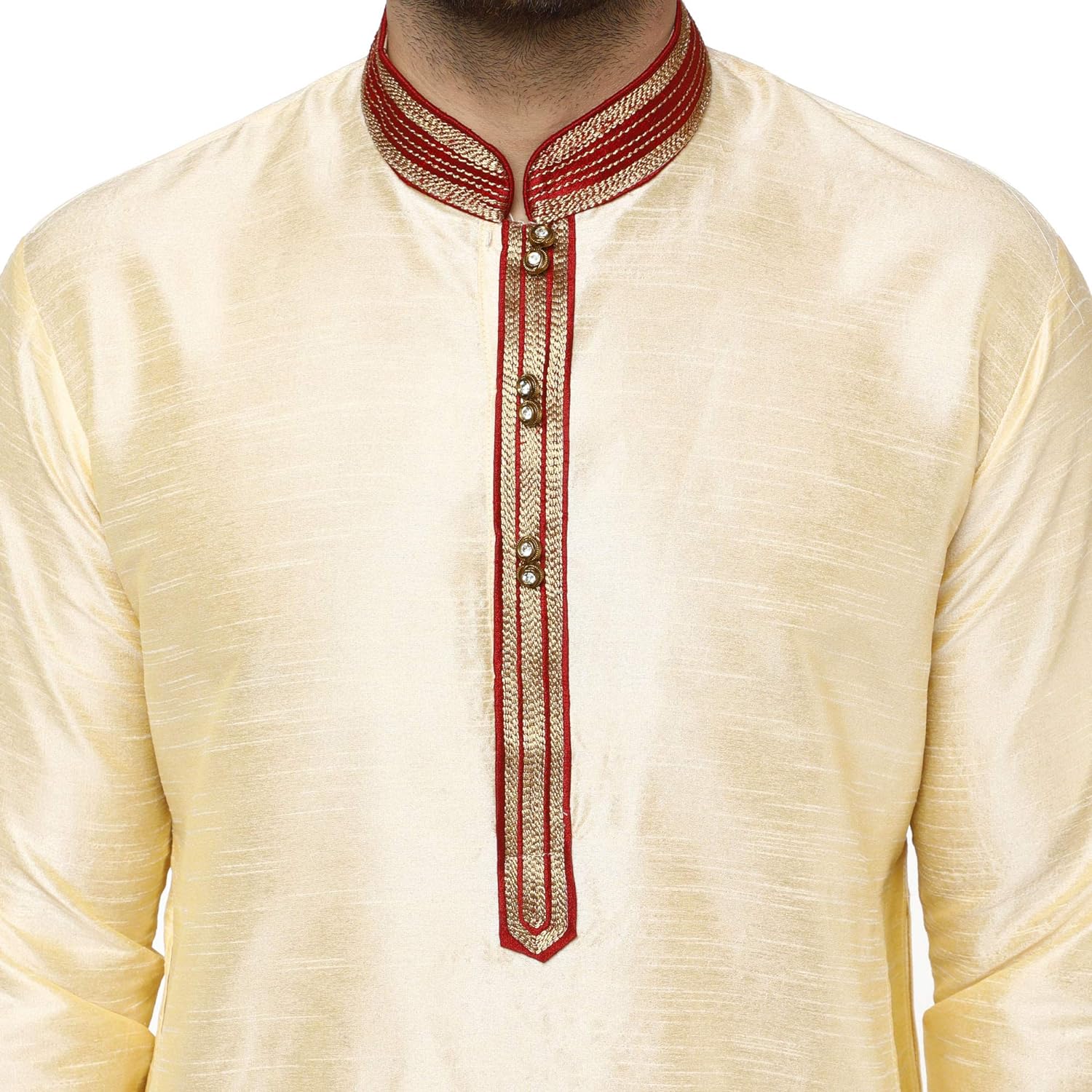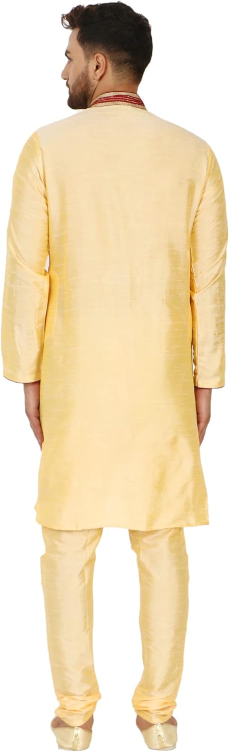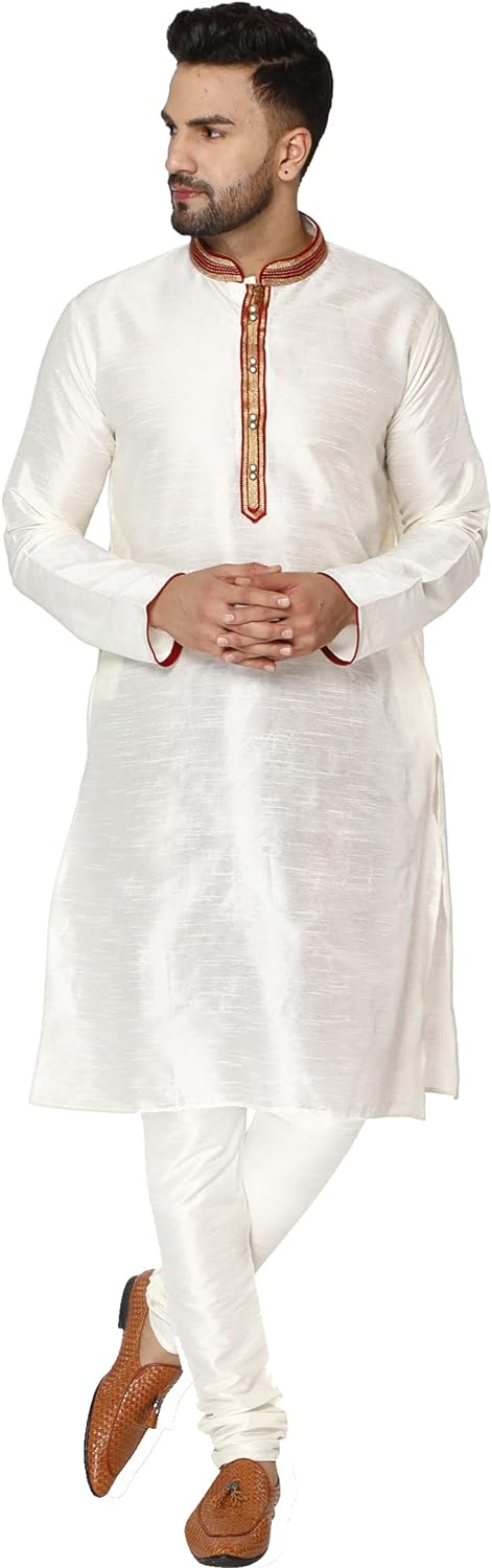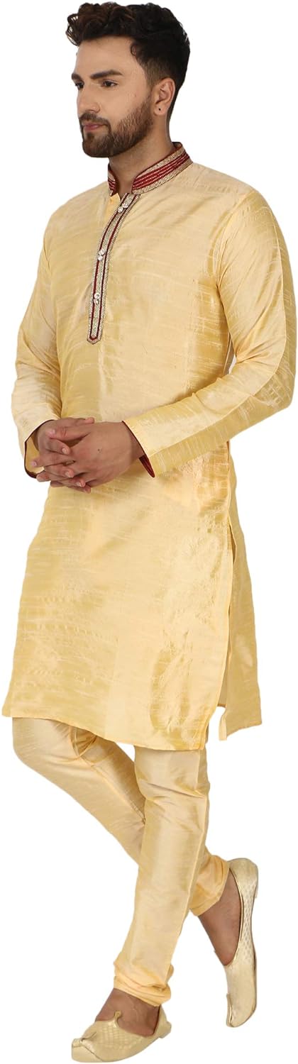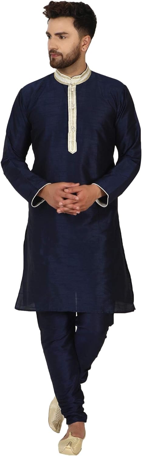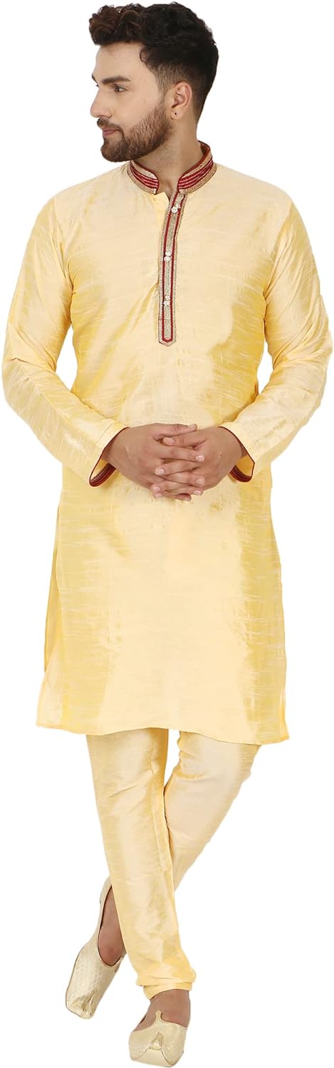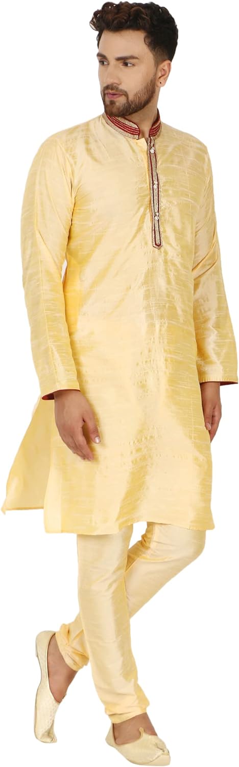 - BEAUTIFUL HANDLOOM KURTA PAJAMA SET : This is 2-piece set that includes a kurta and a pyjama. There is beautiful embroidery on placket and collar with fancy button that adds beauty to this set. The traditional design of this kurta captures all of the details of the classic Indian men's garment with long sleeves, a long hemline with side vents and a mandarin collar.