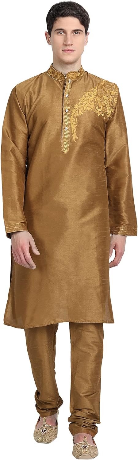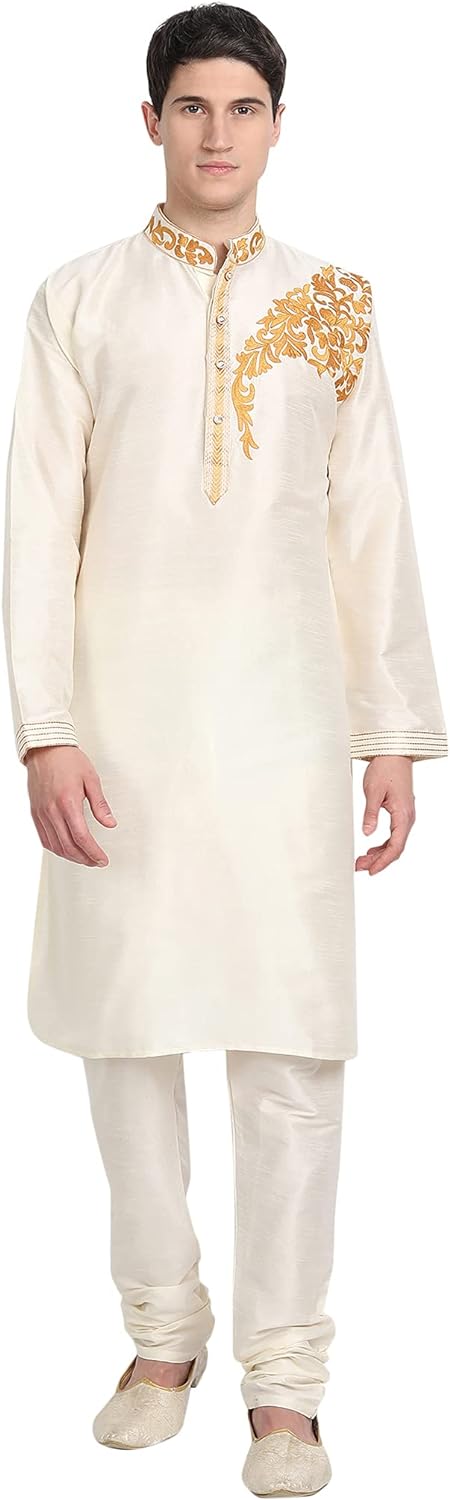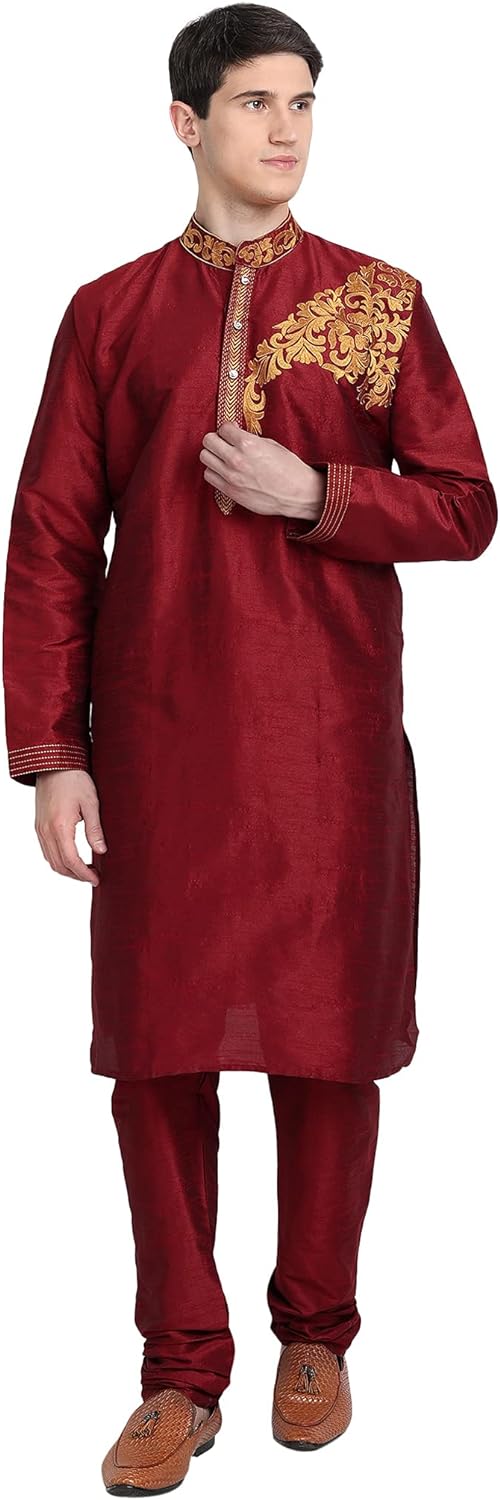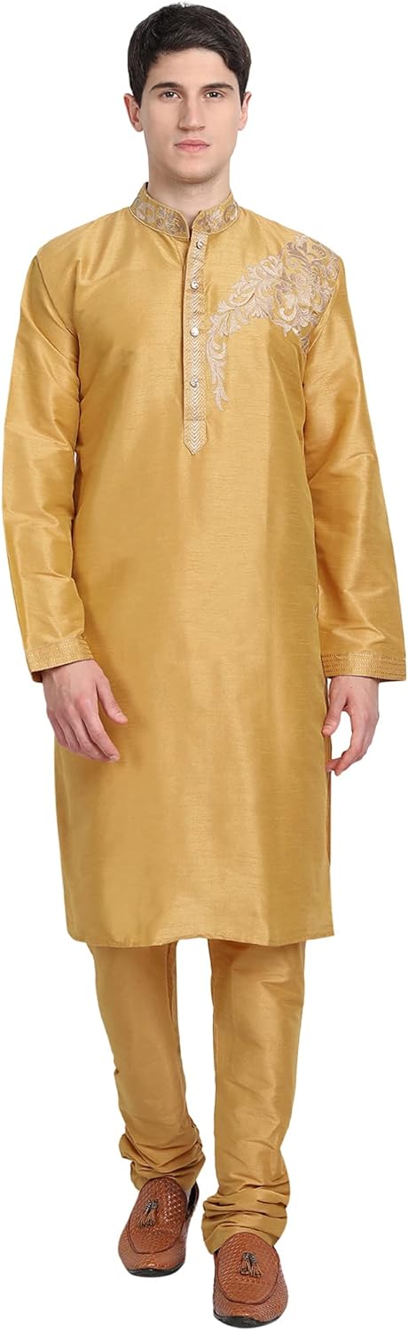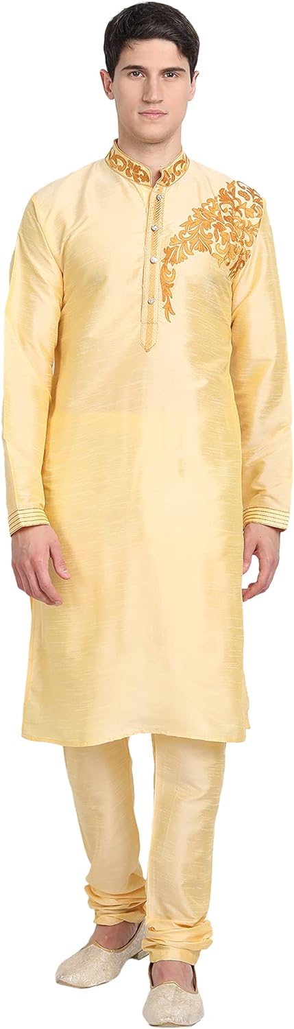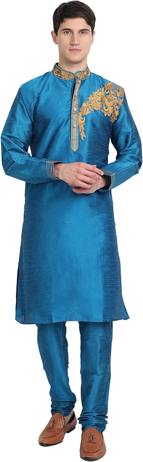 - HIGH QUALITY FABRIC: Lightweight art silk fabric gives this kurta pajama set soft and comfortable feel.