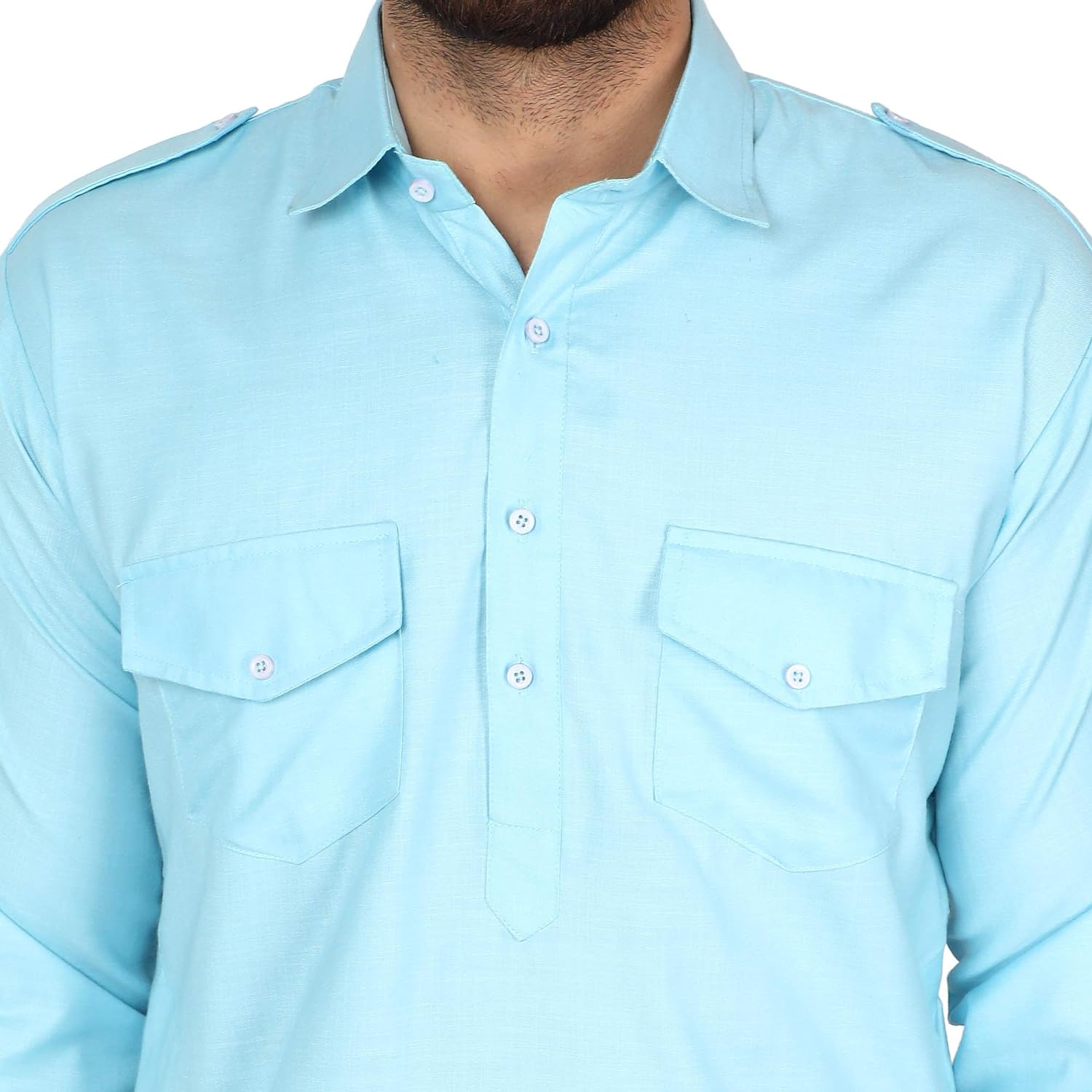 - MATERIAL: Finest Handmade Cotton Blend Fabric (2 Chest Pocket)