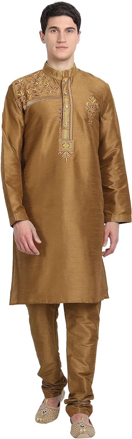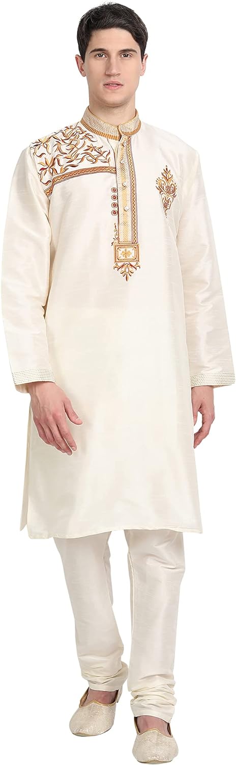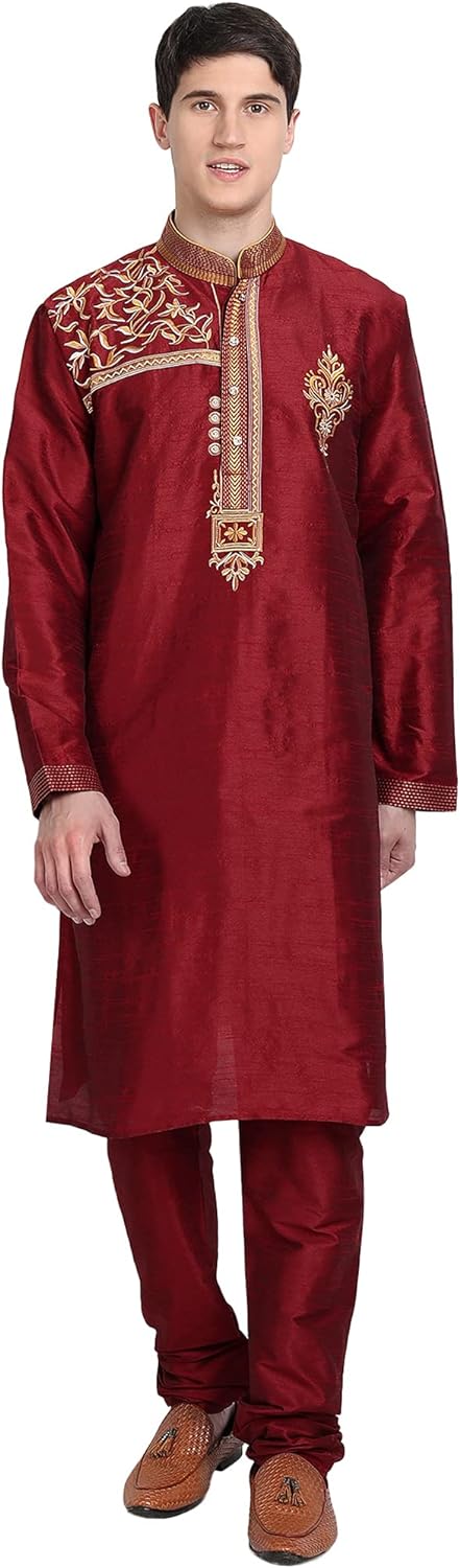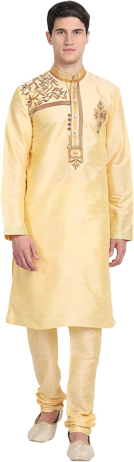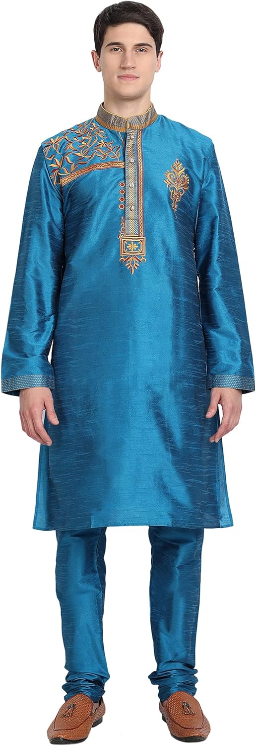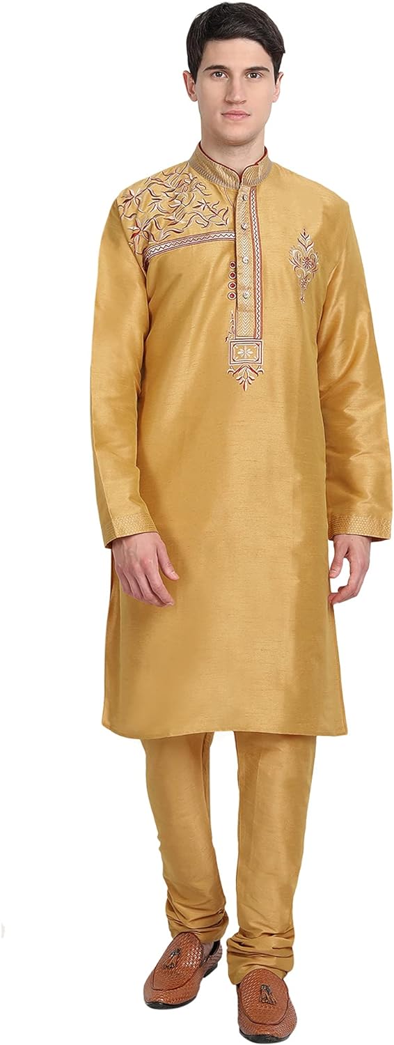 - HIGH QUALITY FABRIC: Lightweight art silk fabric gives this kurta pajama set soft and comfortable feel.