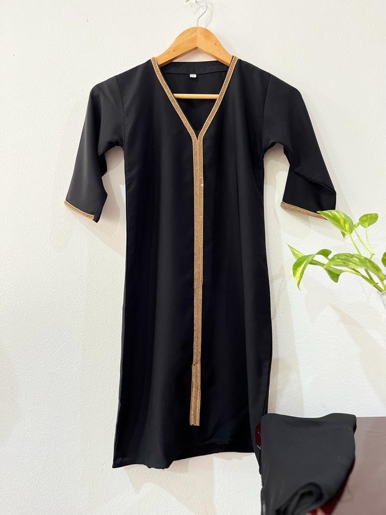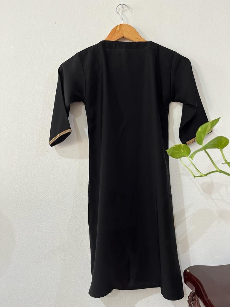 Elevated by a soft fabric and lace trim, this Abaya by Mehwish Abayas is a flattering choice for your daughter. It's quality fabric and perfect tailoring ensure hours of comfort. This free-flowing dress features a V-neck and will offer an elegant appeal.
