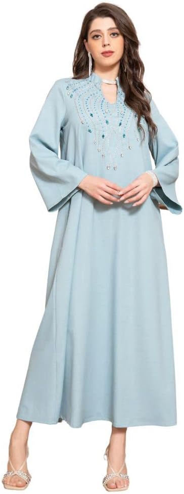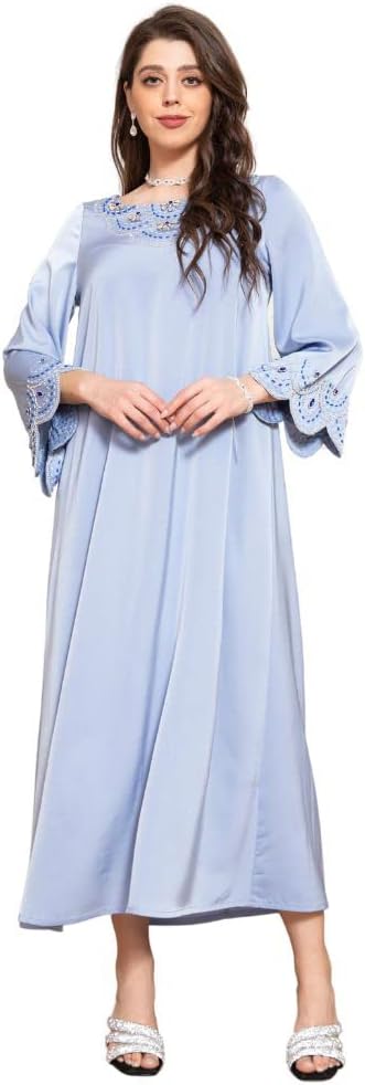 FridayIn Elegant Style Solid color Split fork Rhinestone Slit sleeves Abaya Dresses Kaftan