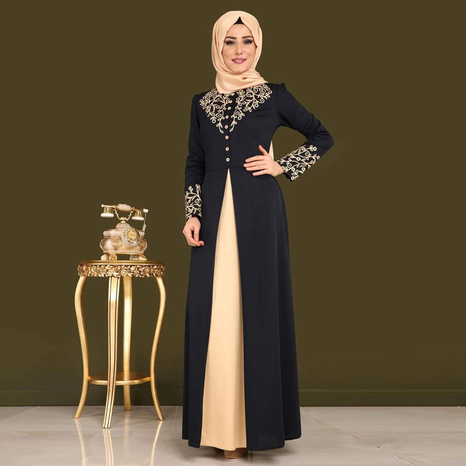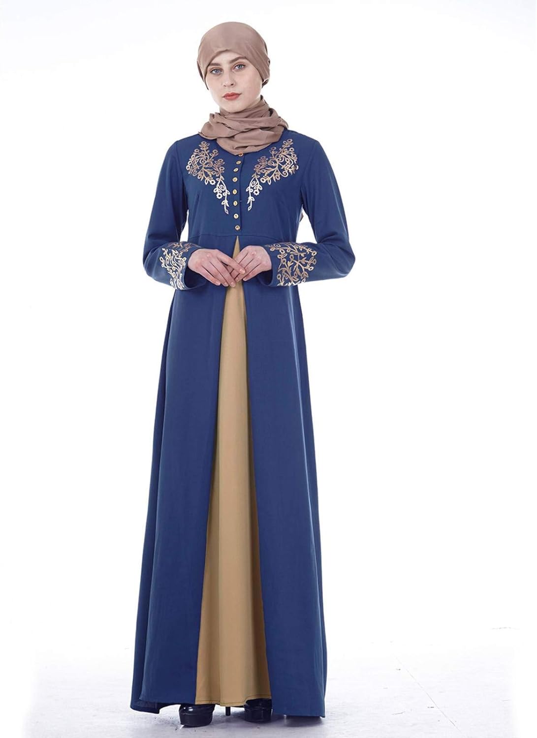 - Features: Splicing loose design, casual, comfortable, traditional long-sleeved dress, very suitable for Muslim women to wear.