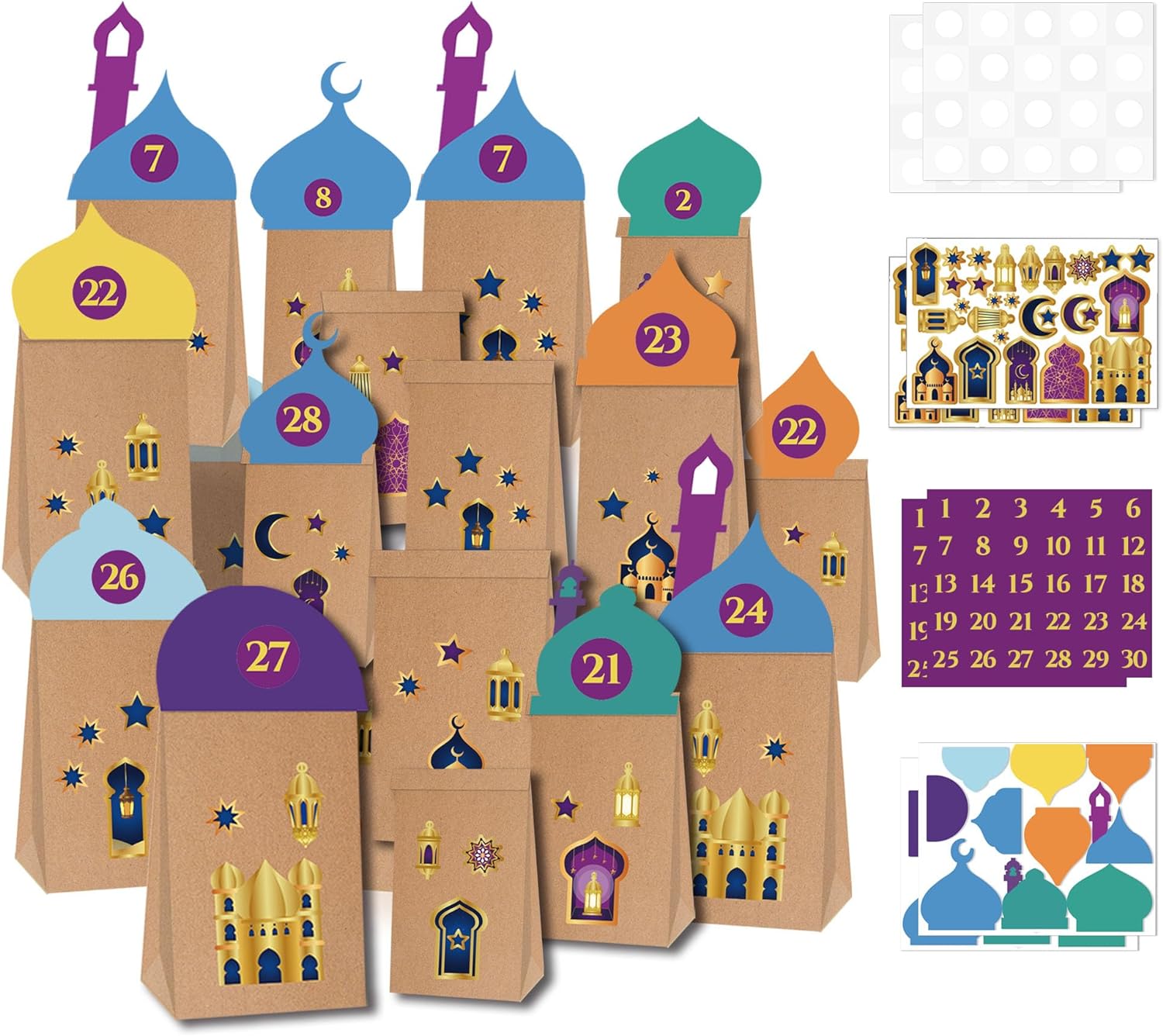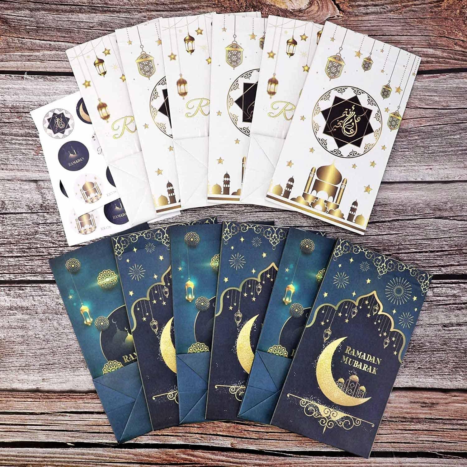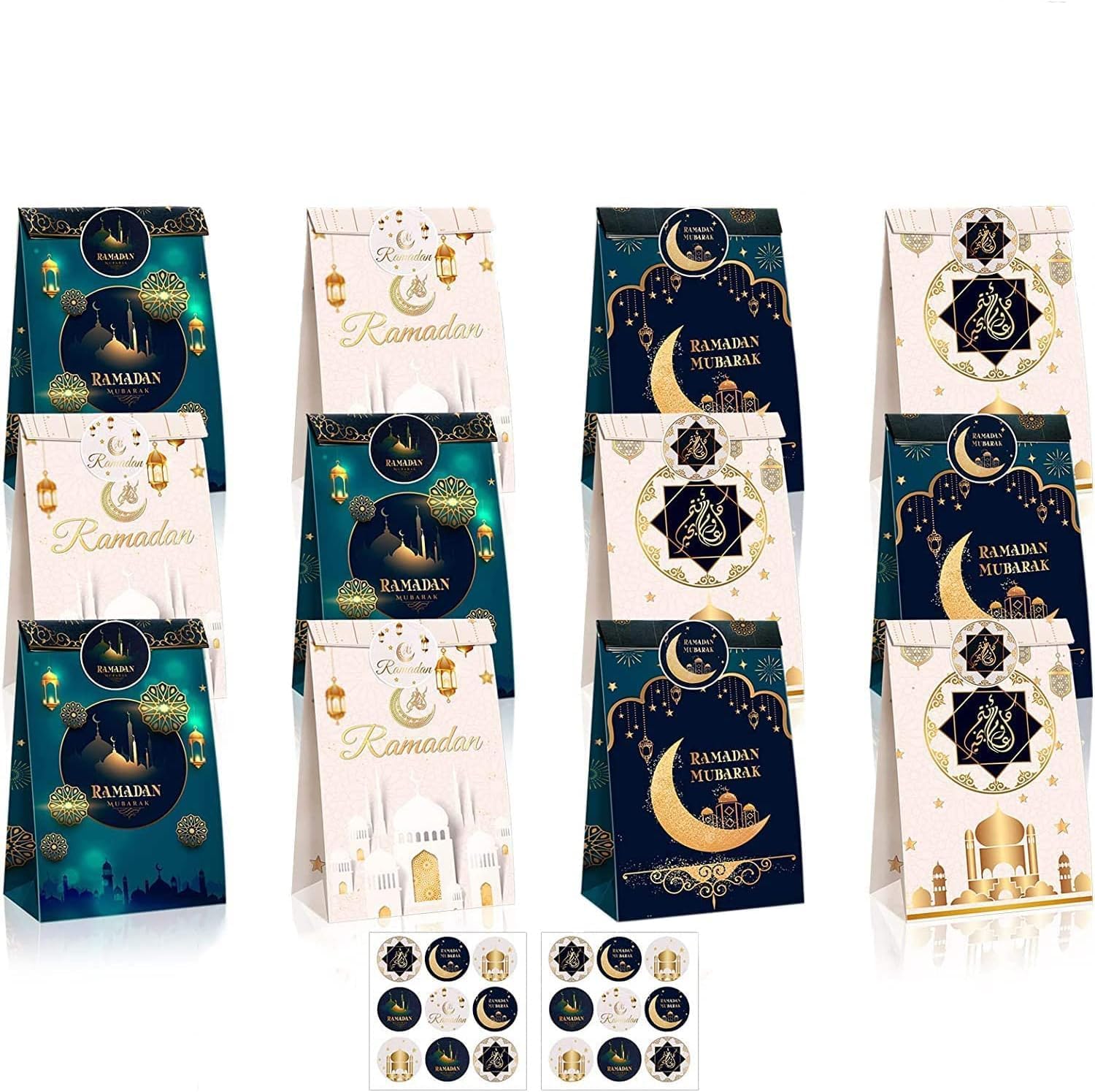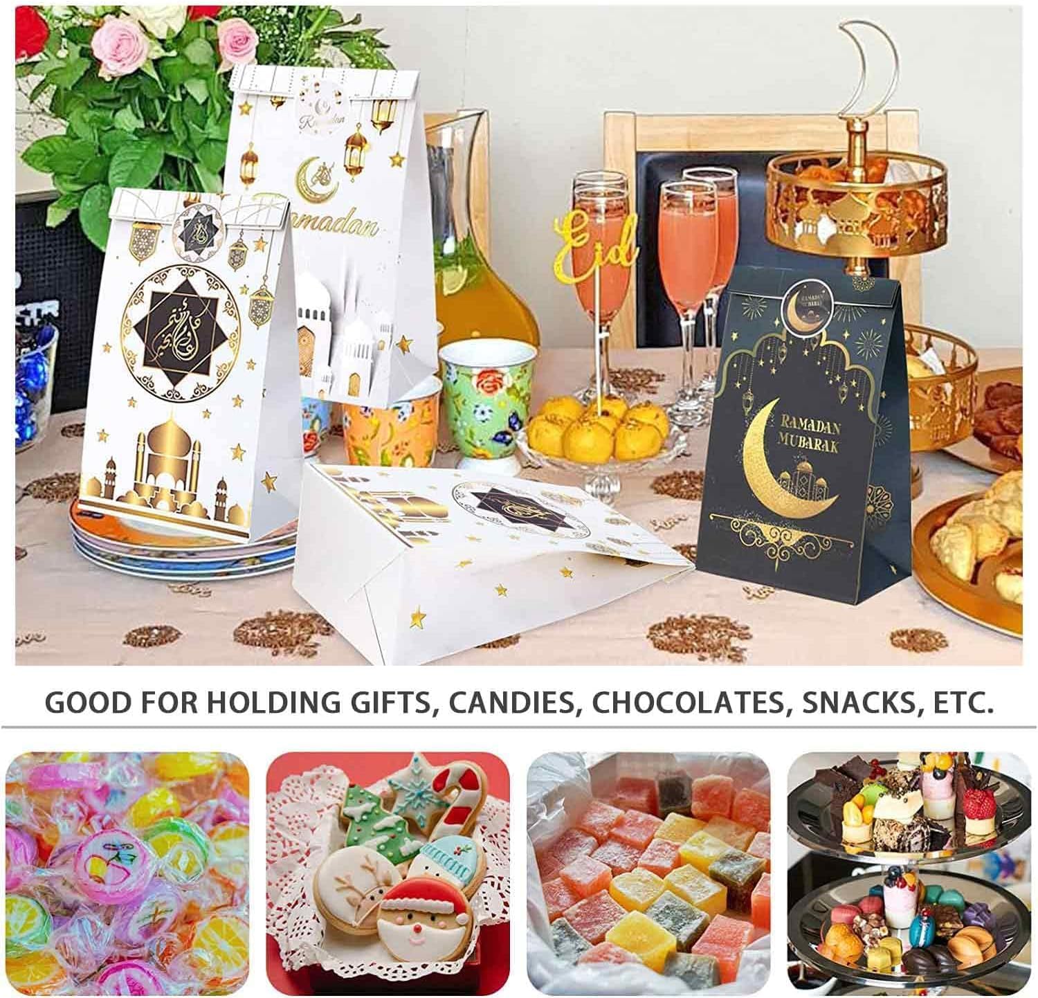 Dailychic 12Pcs Ramadan Gift Bags Set with Stickers,Eid Mubarak Paper Bags Party Favor Ramadan Decoration for Home Party Supplies Candy Bags Treat Bags