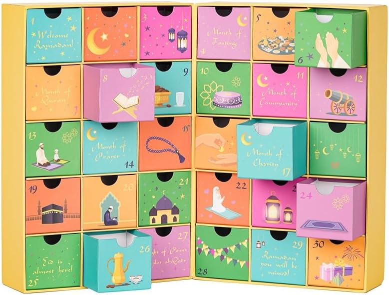 HilalFul Advent Ramadan Countdown Calendar for Kids, Children | 30 Days, 30 Surprises, 30 Drawers | Islamic Themed | Gift for Boys, Girls