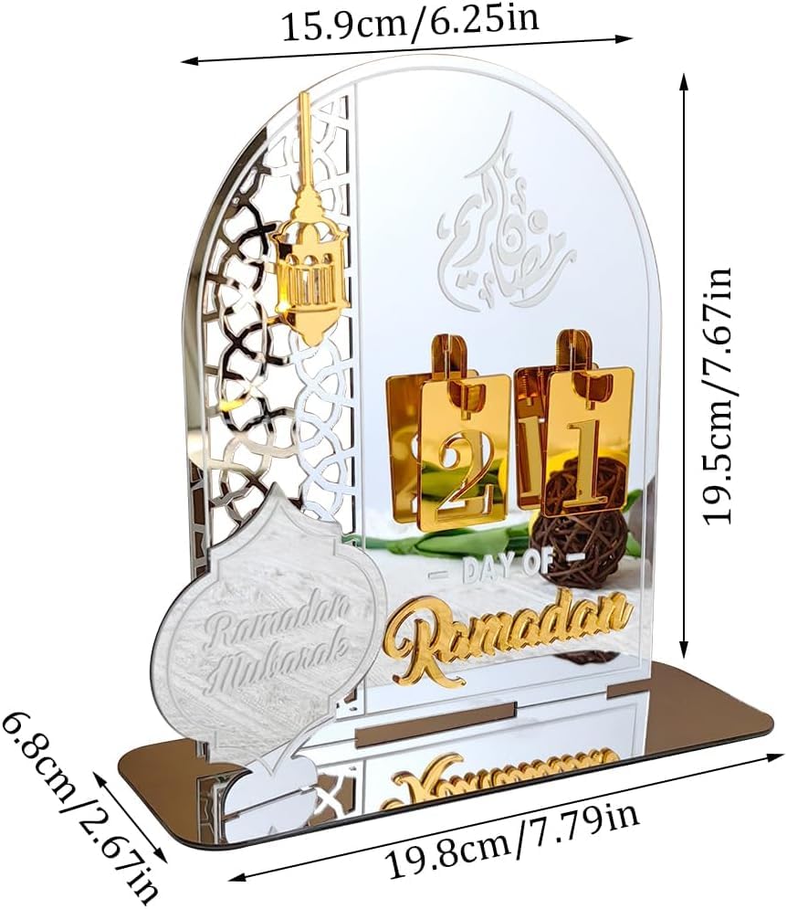 【Acrylic Muslim Holiday Ornaments】Our Ramadan calendar is made from good quality acrylic material, which is durable and practical to use. The hollowed out design is exquisite and retro, and the classic Ramadan elements make the theme more prominent, making the Ramadan countdown calendar look eye-catching and charming.
