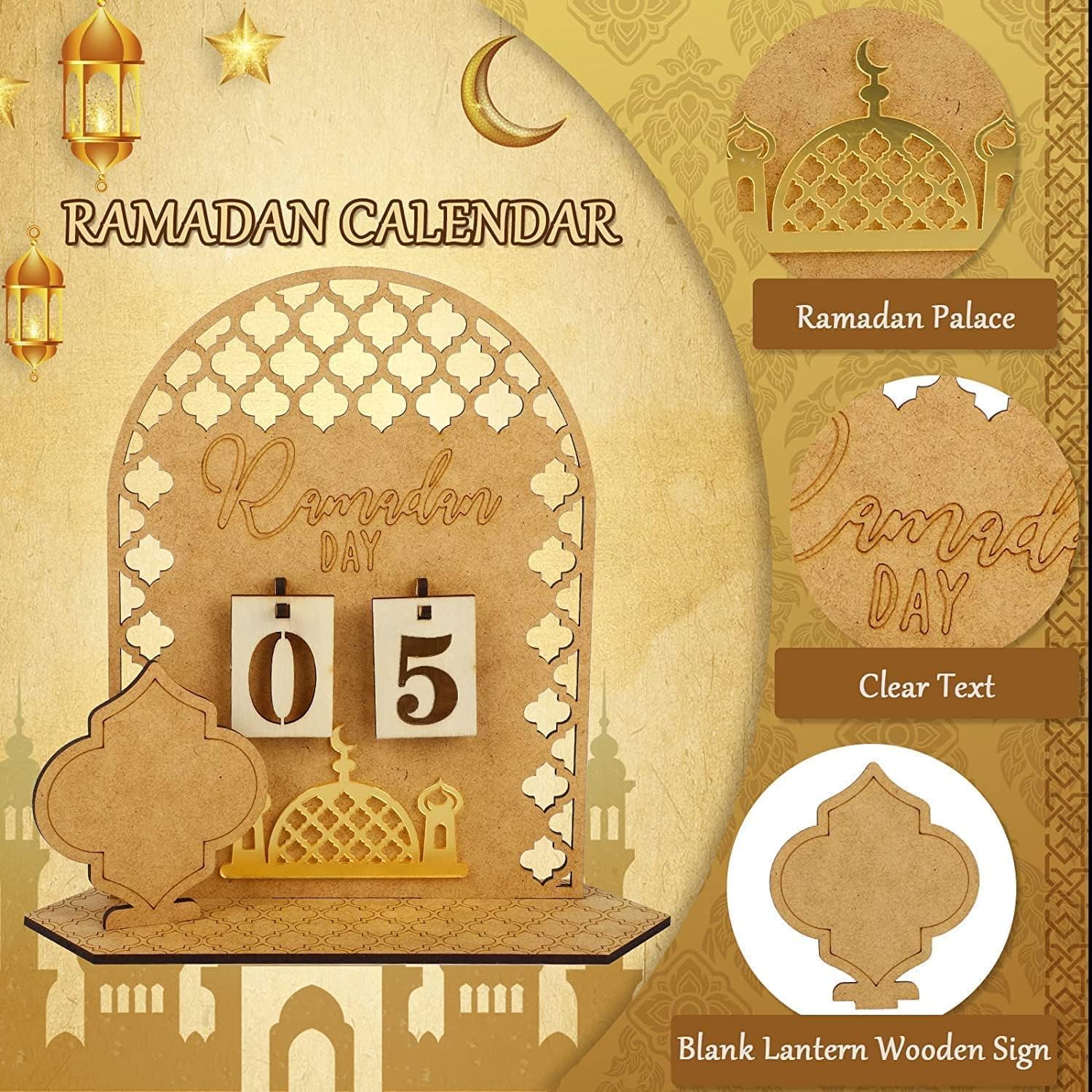 Tiokkss Ramadan Wooden Calendar, Rustic 30 Days Countdown Ramadan Calendar Children, Ramadan Advent Calendar Eid, Ramadan Calendar Elegant Mubarak Ramadan Decoration (Palace)