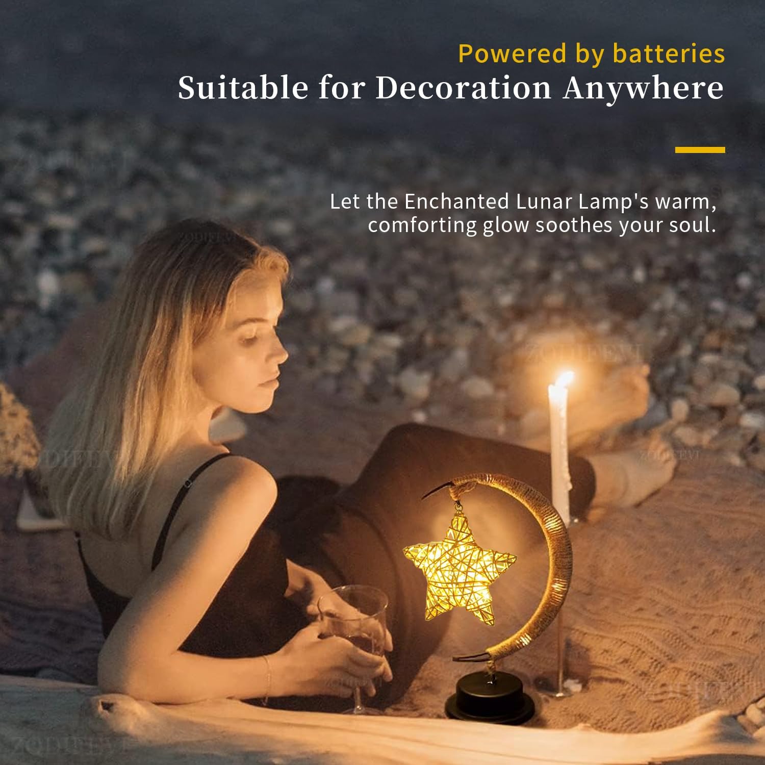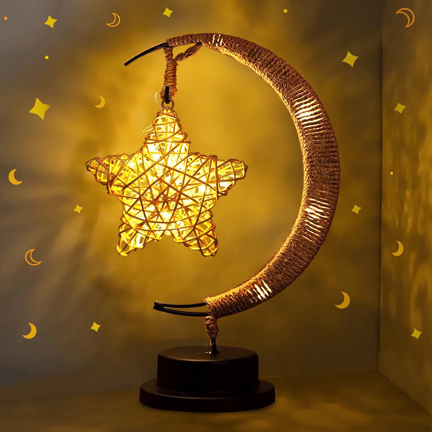 Yoawllty Ramadan Decorations for Home,Enchanted Lunar Ramadan Lamp,Magic Moon Shape Table Lamp, Hanging Star Lamp,Home Bedroom Romantic Desktop Nightstand Decoration