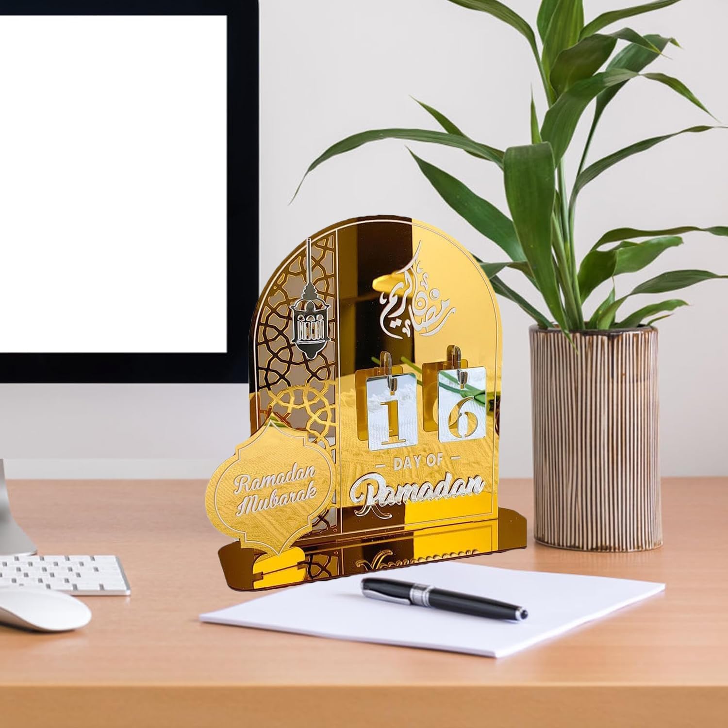 Yoawllty Ramadan Decorations for Home Ramadan Advent Calendar Countdown Calendars Eid Ramadan Calendar Ramadan Gift (Gold)