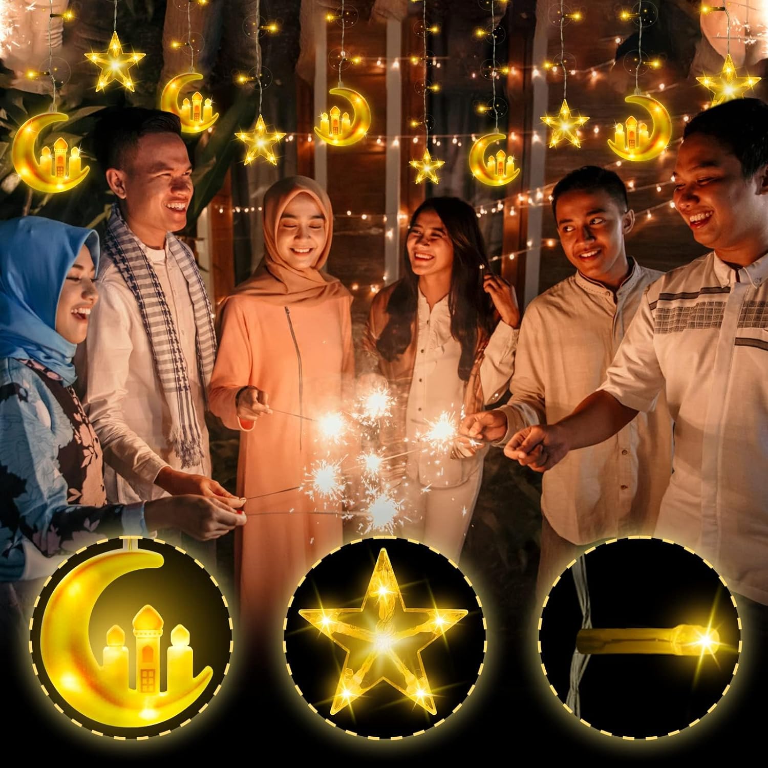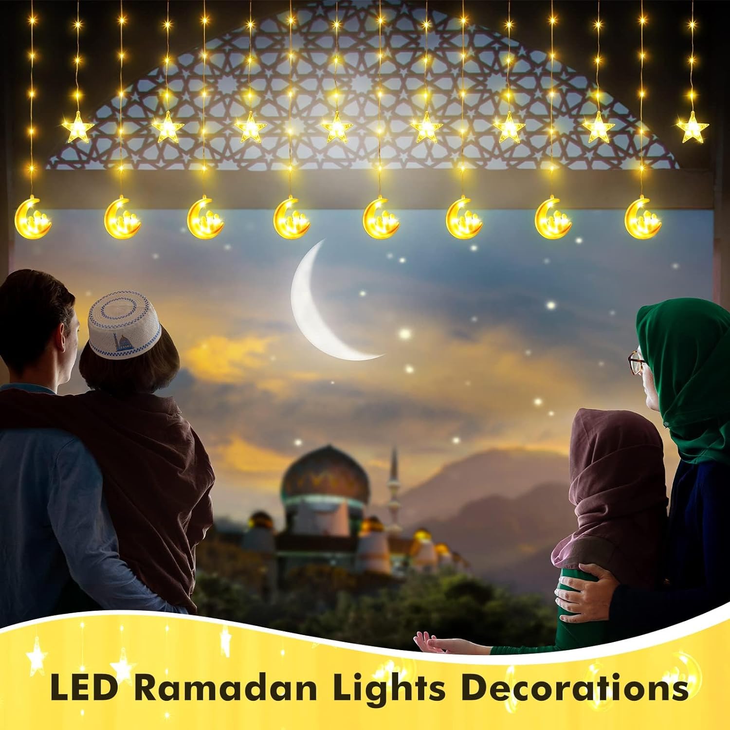 Tiokkss Ramadan Lights Decorations Star Moon Castle Curtain Lights Bat – BUYO