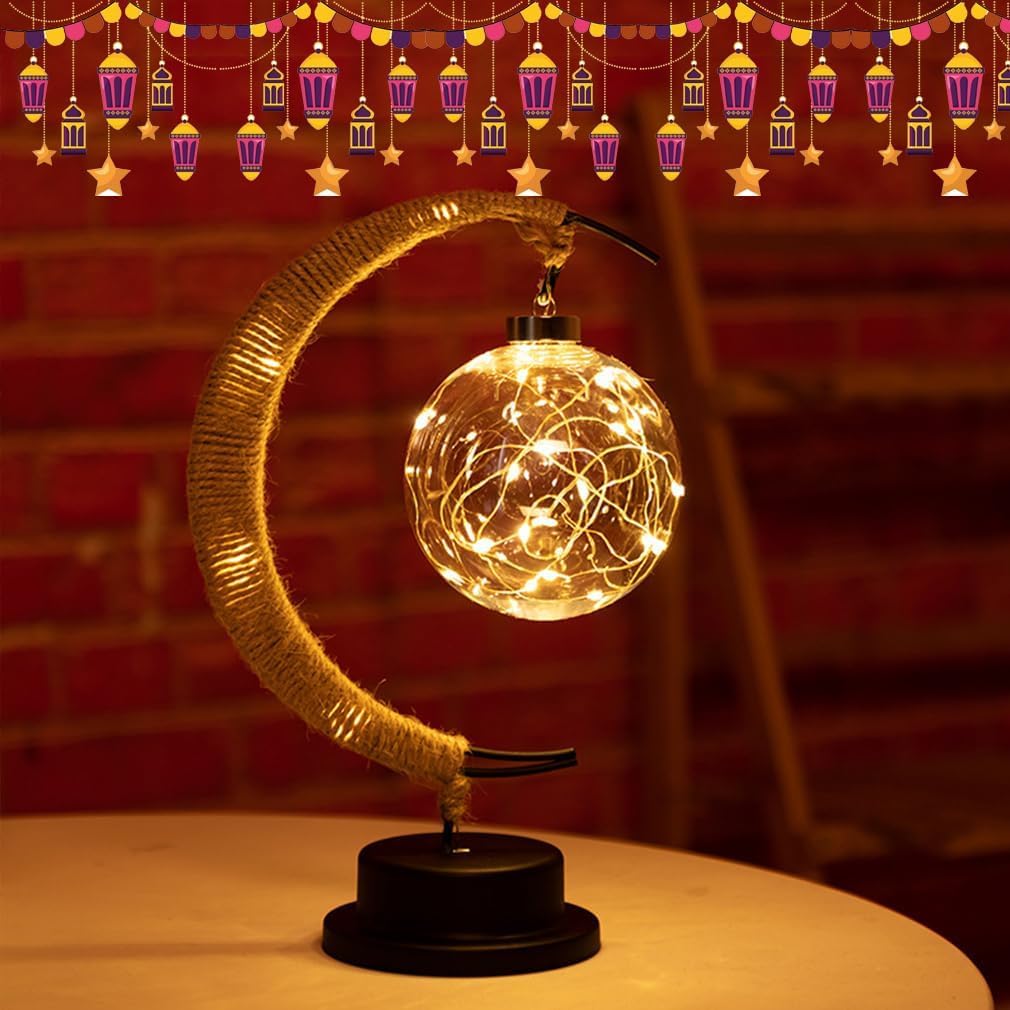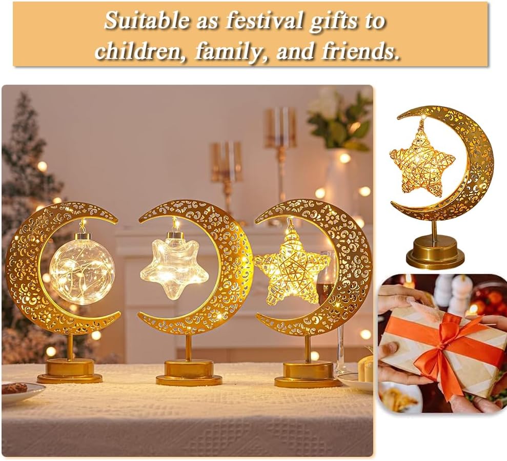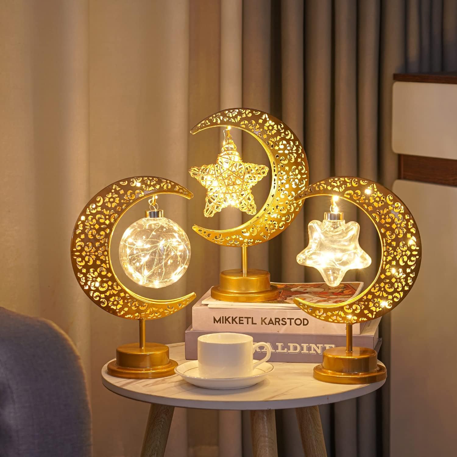 【Eid Mubarak Decorations】: The hanging shape of this Ramadan decorative table lamp has classic moon star Muslim elements and lights up beautifully. It can be used not only for Ramadan, Christmas and holiday decorations, but also as a bedside lamp to create a different atmosphere.