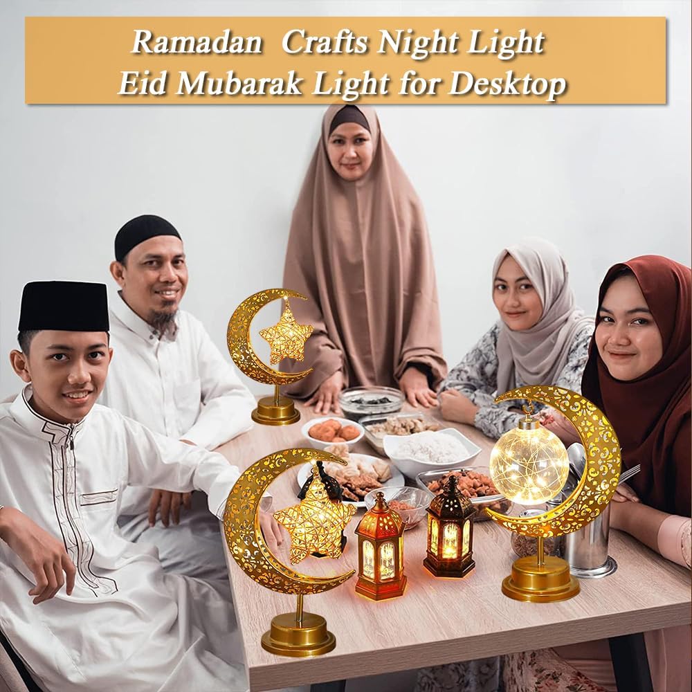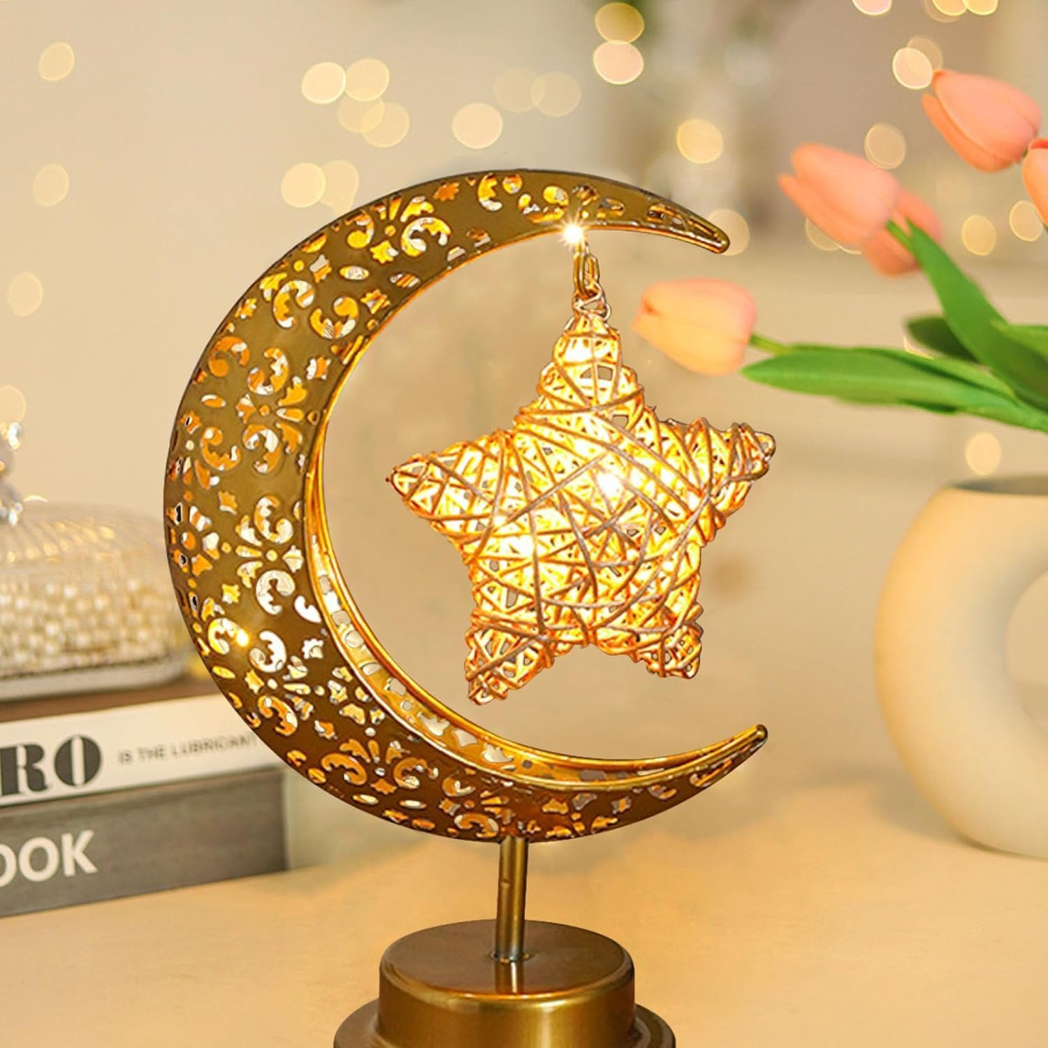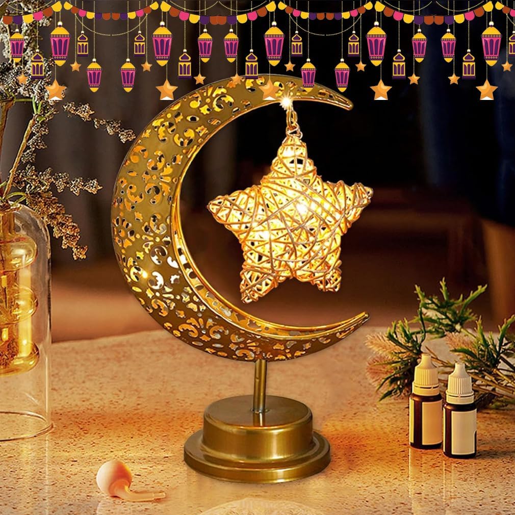 Aowin Eid Mubarak LED Moon Lamp Ramadan Moon Star Decorative Table Lamp Eid Muslim Iron Art Atmosphere Night Lights Ramadan Decor for Home Garden Living Room Bedroom Nursery Party Ramadan Decorations