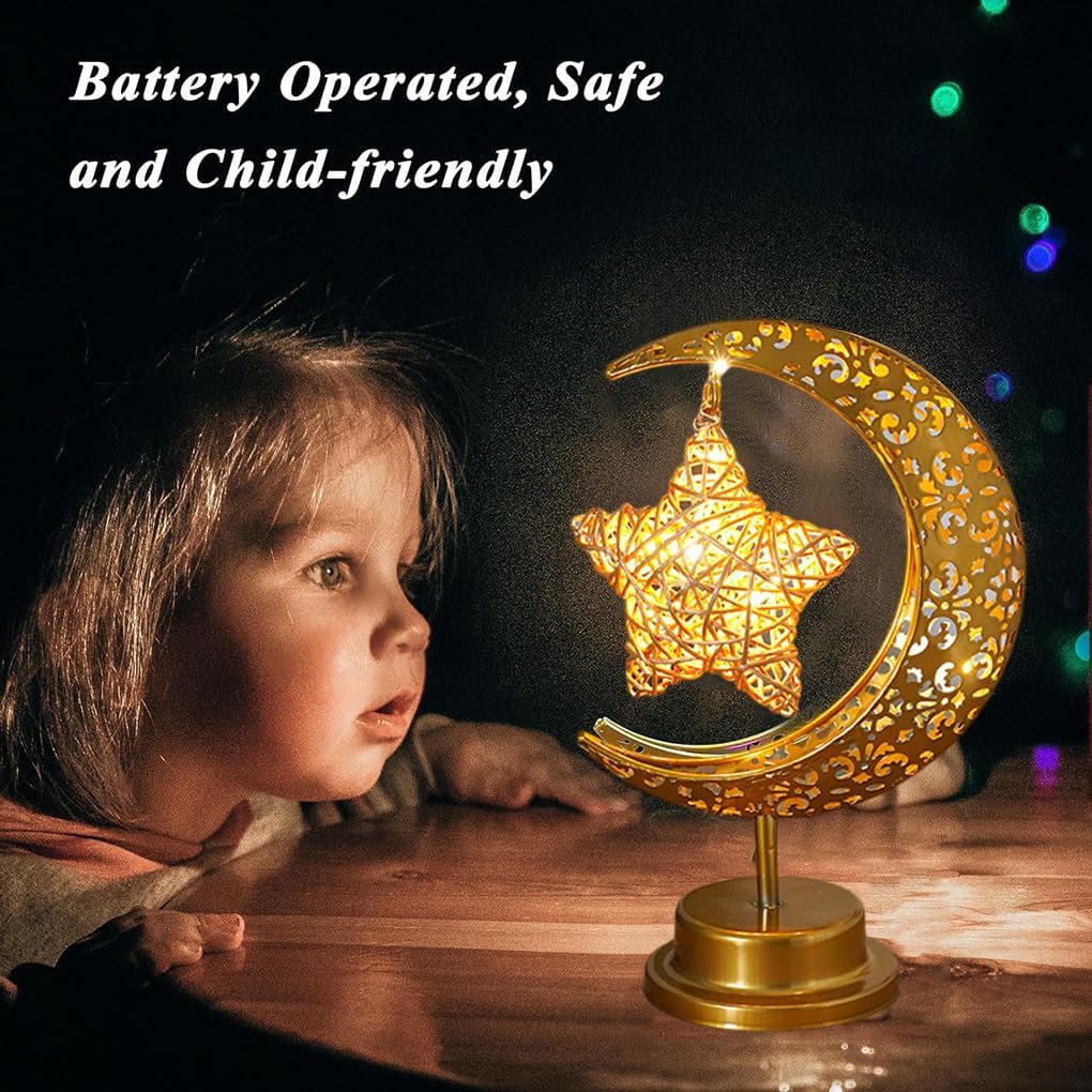 【Great Gift】: Perfect for children's gifts and Ramadan gifts, this beautiful and special table lamp is full of mystery when it's not on and cozy when it is. The Moon Star NightLight is the perfect gift for any occasion.