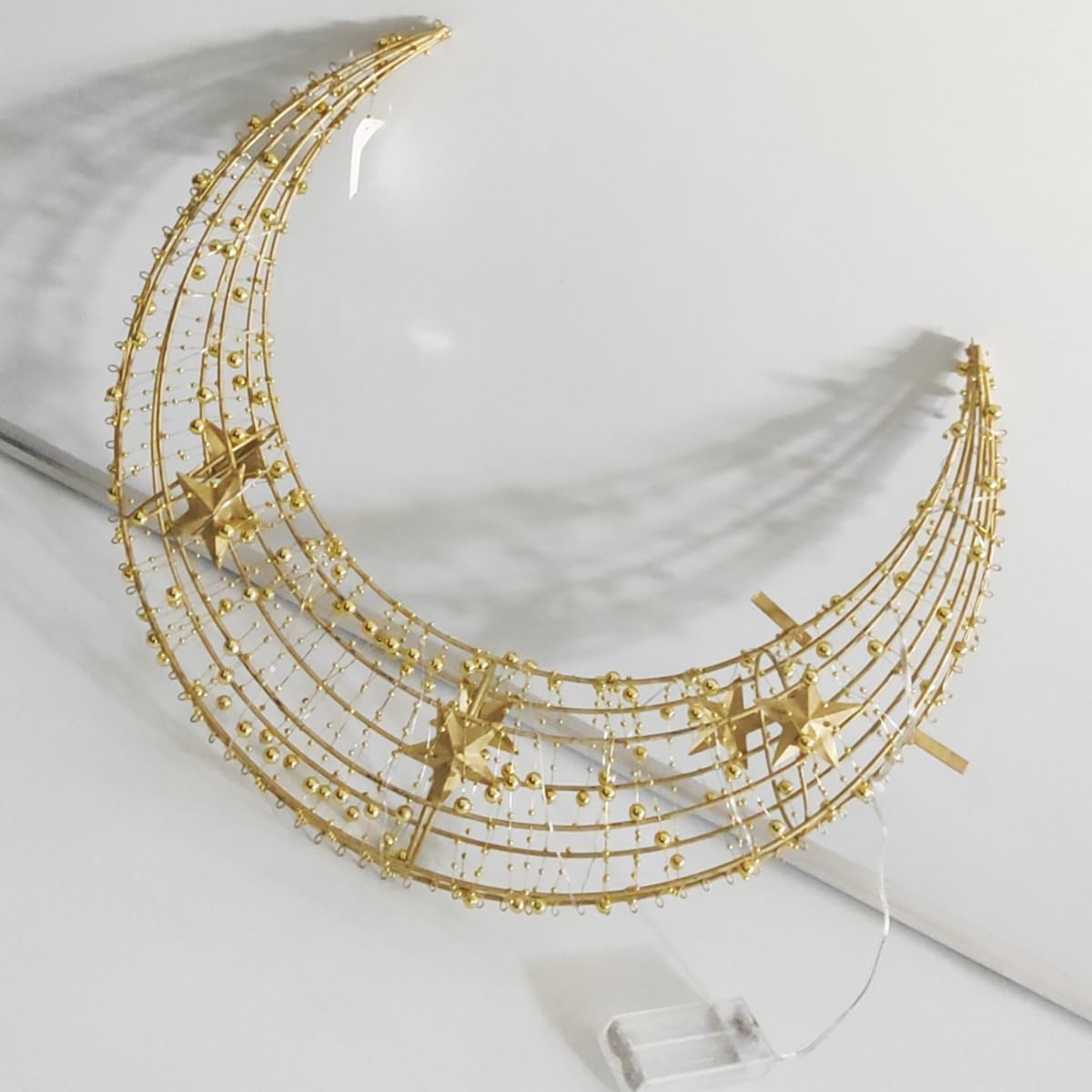 ECVV Ramadan Eid Mubarak Moon Shape Night Light LED Muslim Ramadan Table Light Crafts Desktop Decoration for Festival Home Party