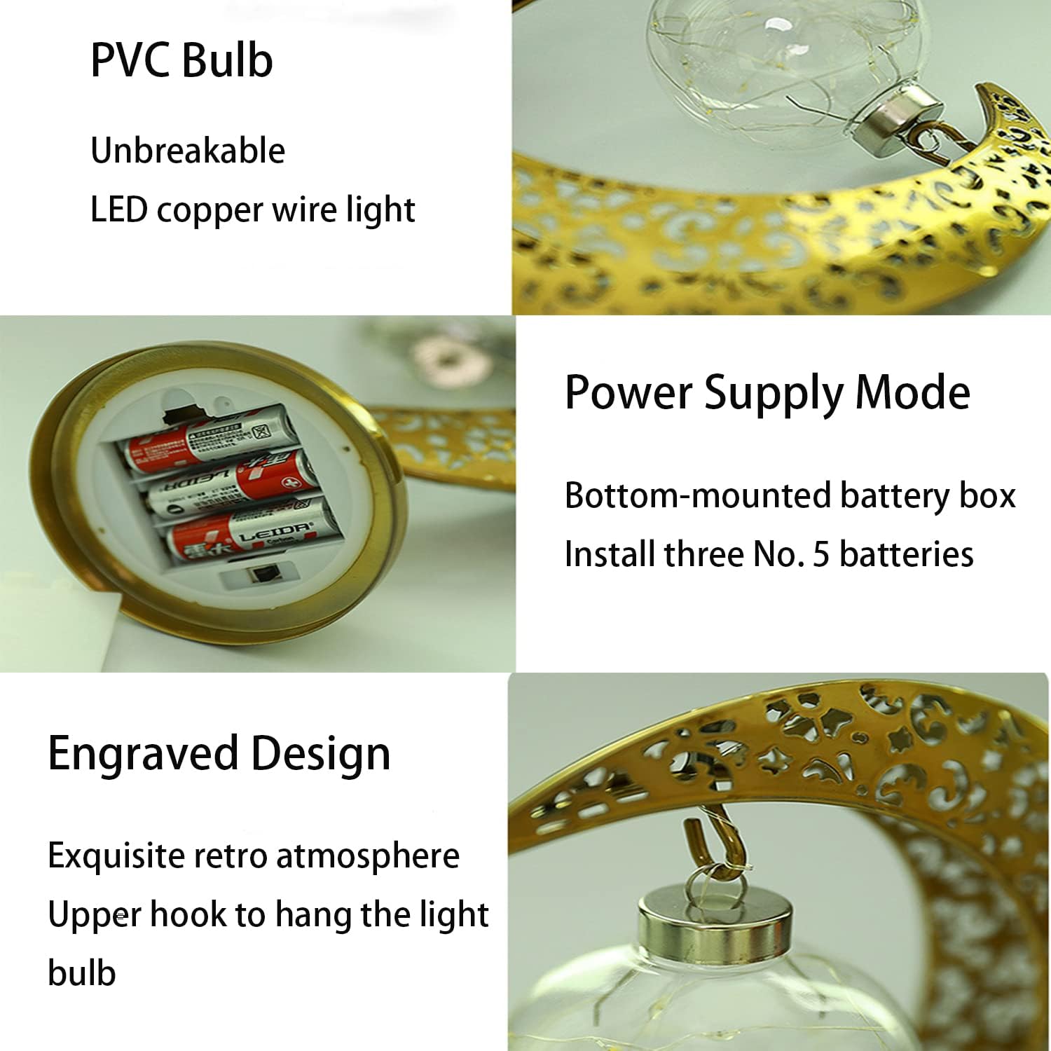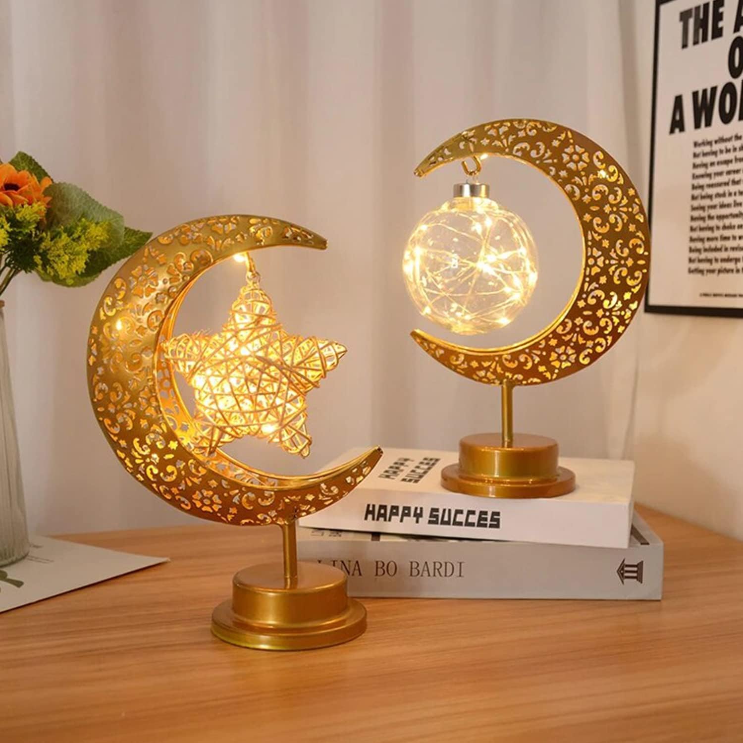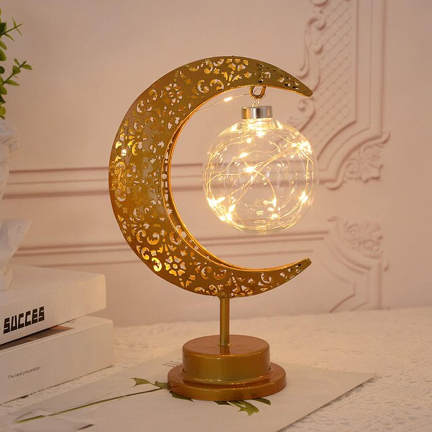 【Novel Lunar Design】Our Ramadan decorations table lamp features a moon shaped lamp base that looks beautiful when lit. It can be used not individual for Ramadan, Christmas and holiday decoration, but also as bedside lamp to create different atmosphere.