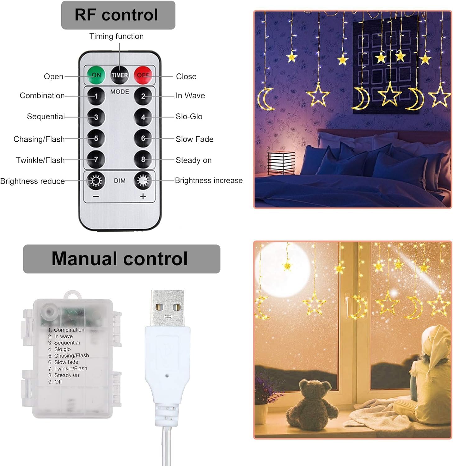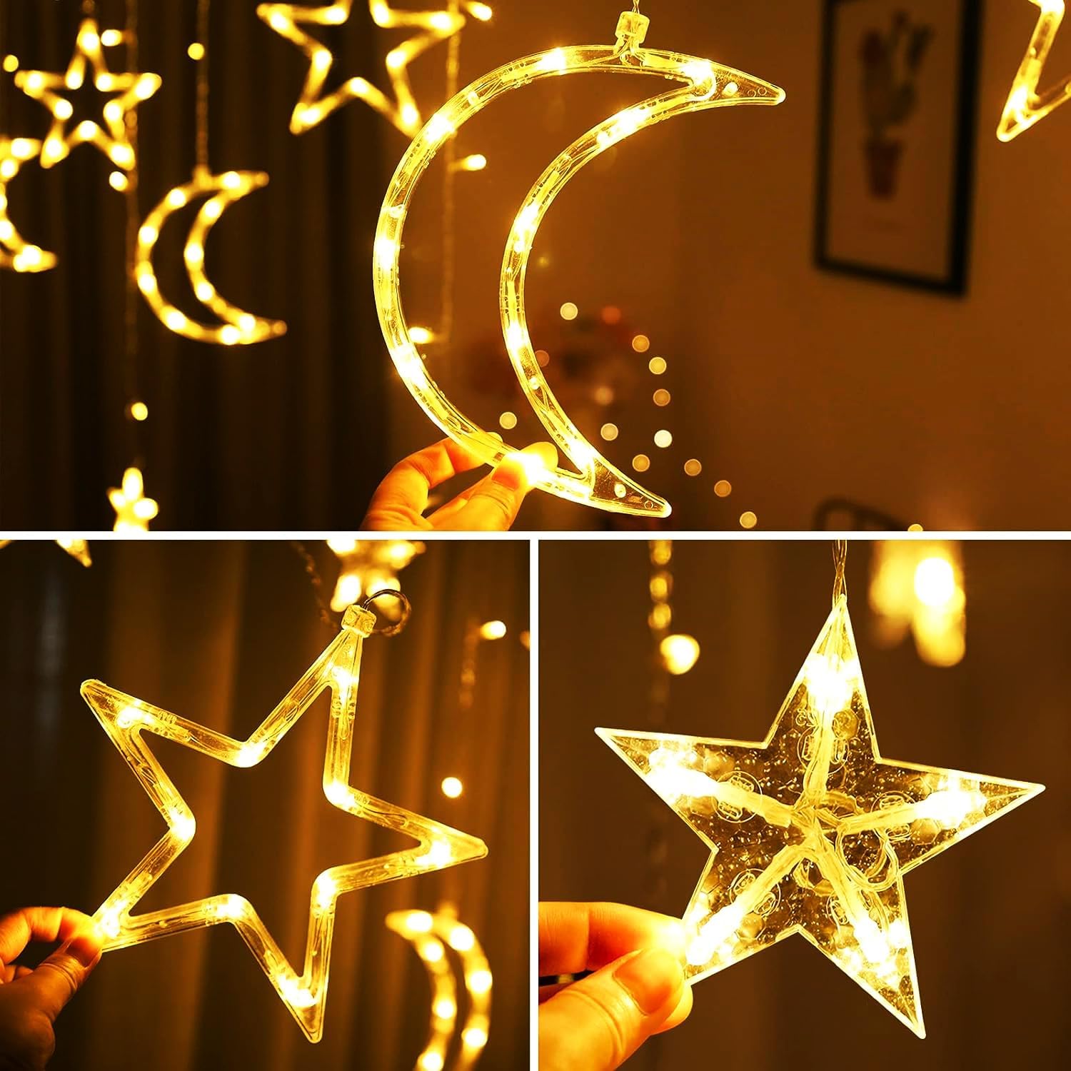 【Wide Use】- Ramadan decorations lights are perfect for decorating windows, rooms, dining rooms, walls. They are designed for different occasions: Christmas, Ramadan,Valentine's Day, parties, weddings, holidays or any important occasions;The star design with warm white LED lights will make all occasions full of joy and vitality.