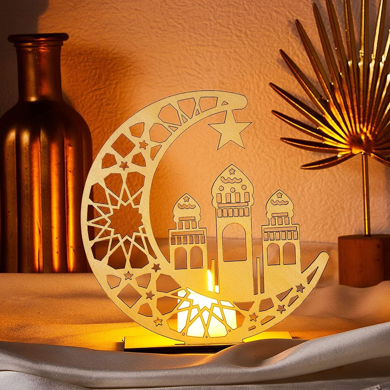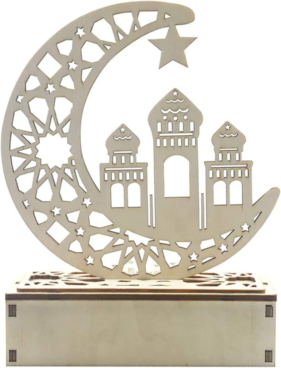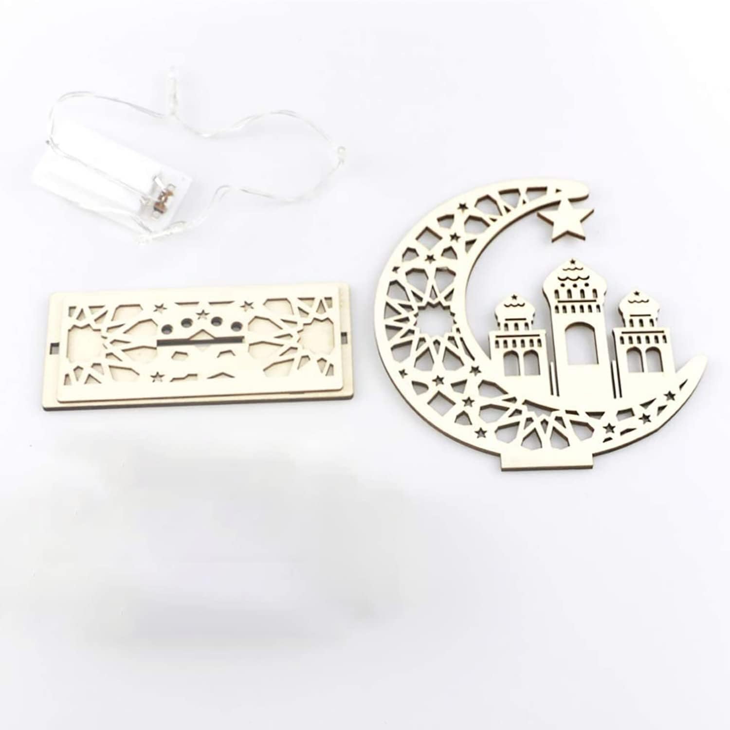 【WOODEN ART CRAFT】- The ramadan decor features high brightness, low power consumption, great durability . Made of natural wood, high quality, high strength, not easy to break, durable. This ornament is suitable for Muslim Islamic Eid Mubarak or other festivals.