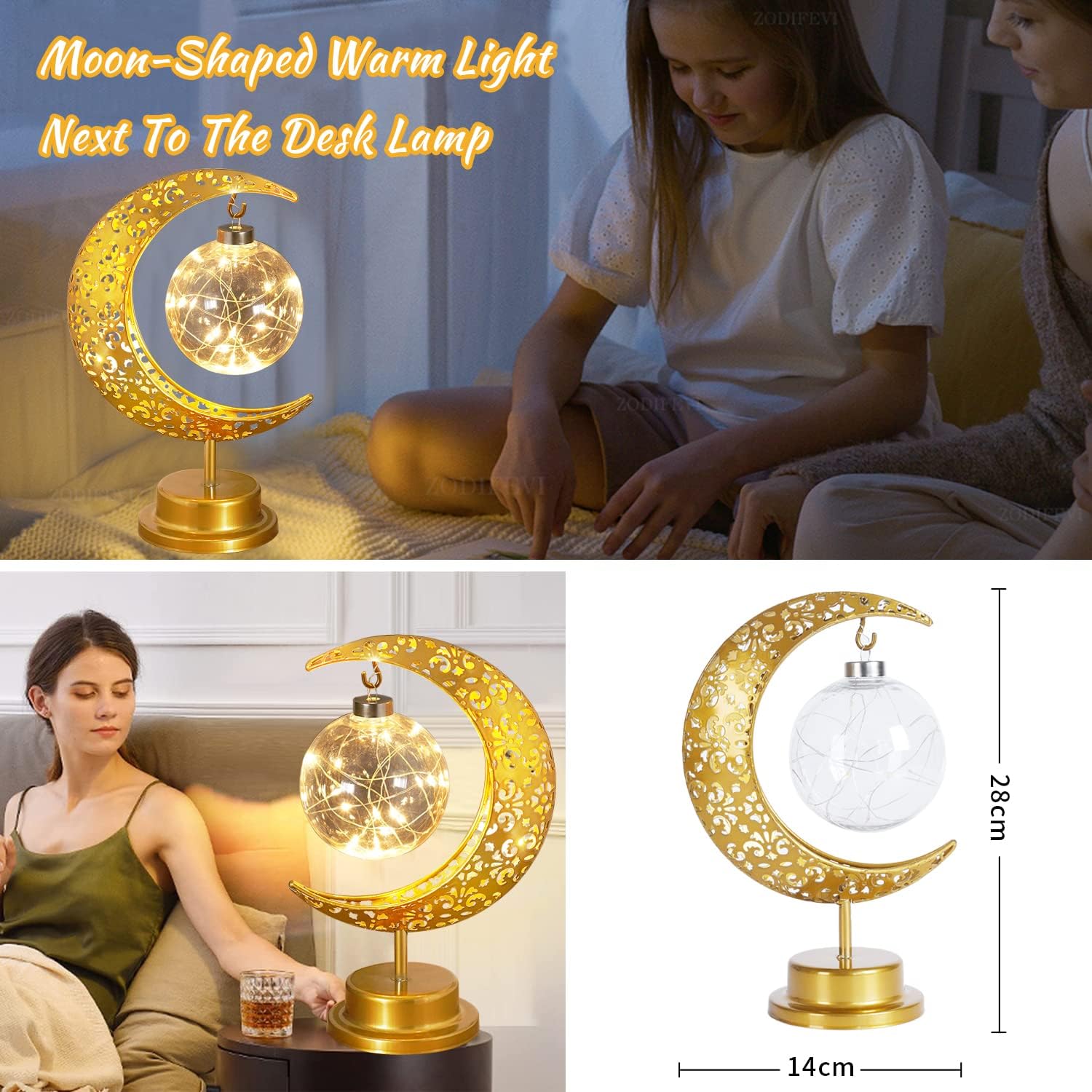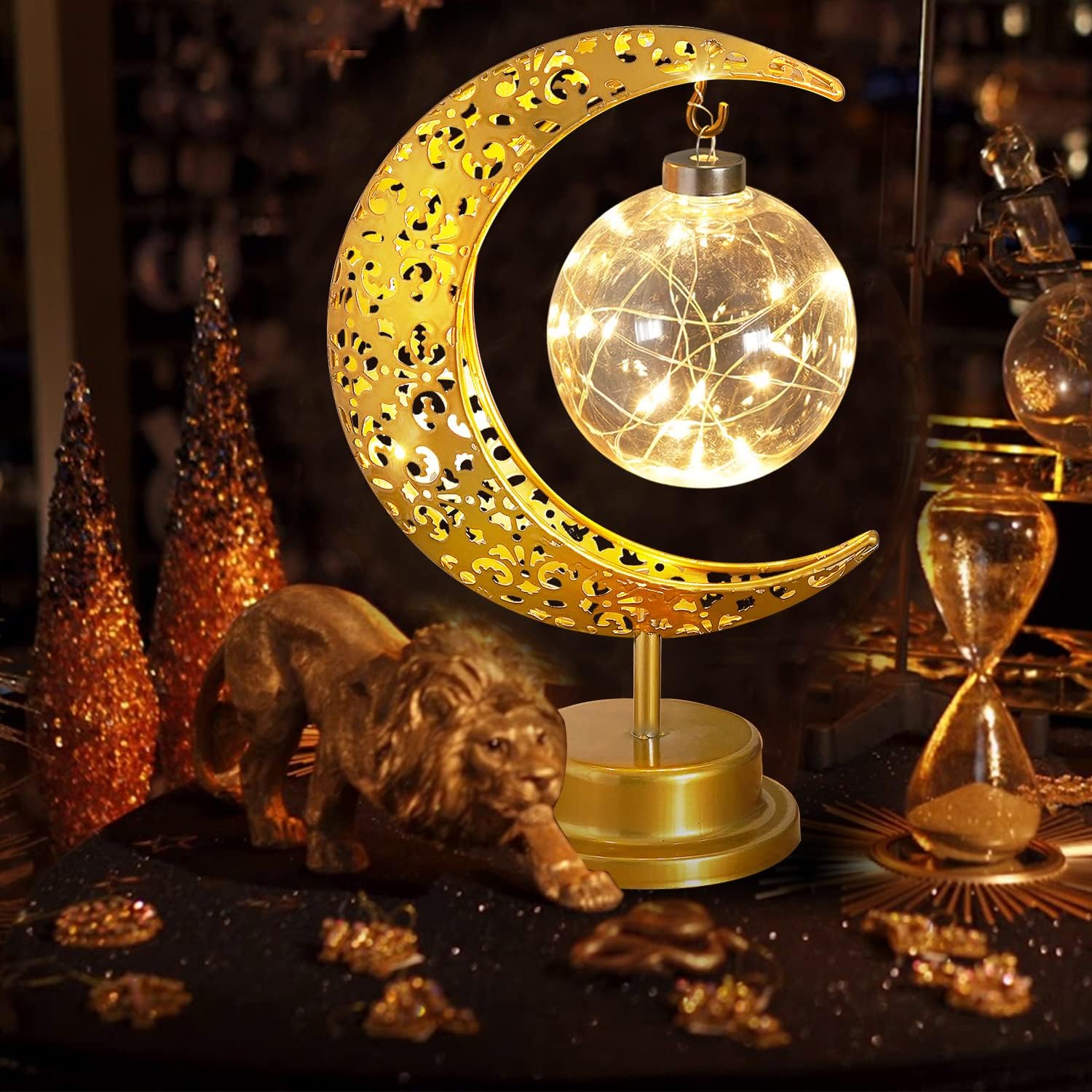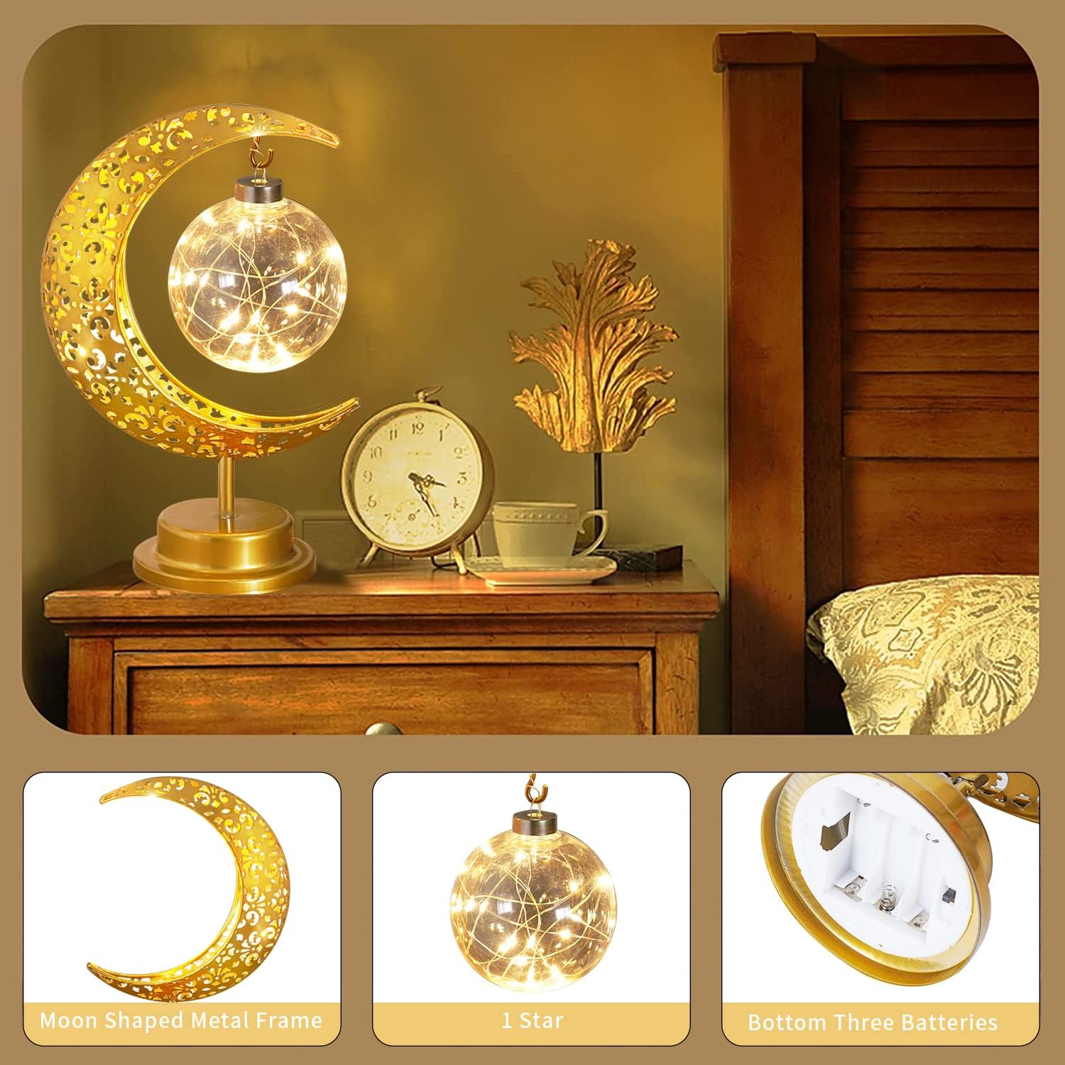 🌙Crescent Moon Lamp: This table lamp has a unique shape of a ramadan moon, which looks very beautiful and luxurious when it is lit. Not only can be used for festival decoration, but also can be used as bedside lamp to create different atmosphere.