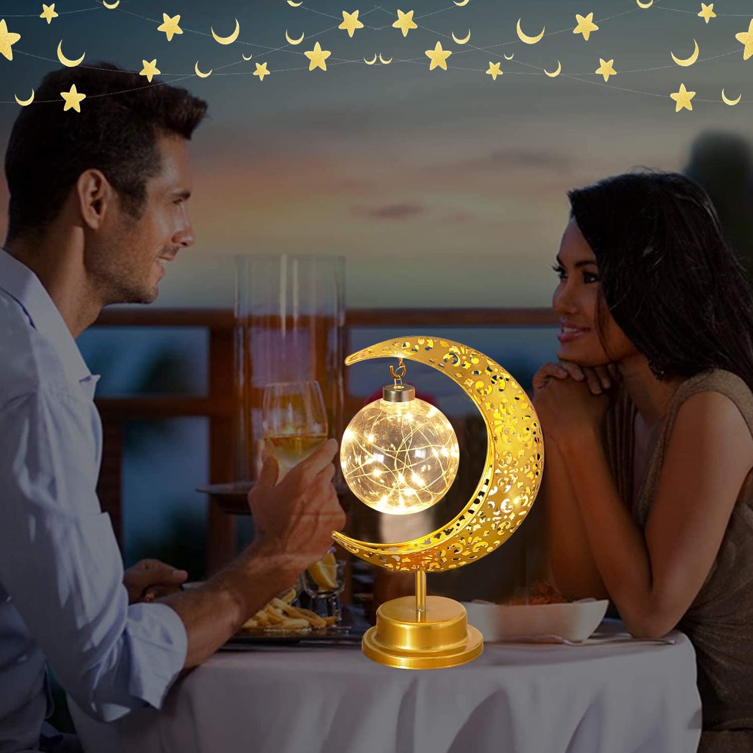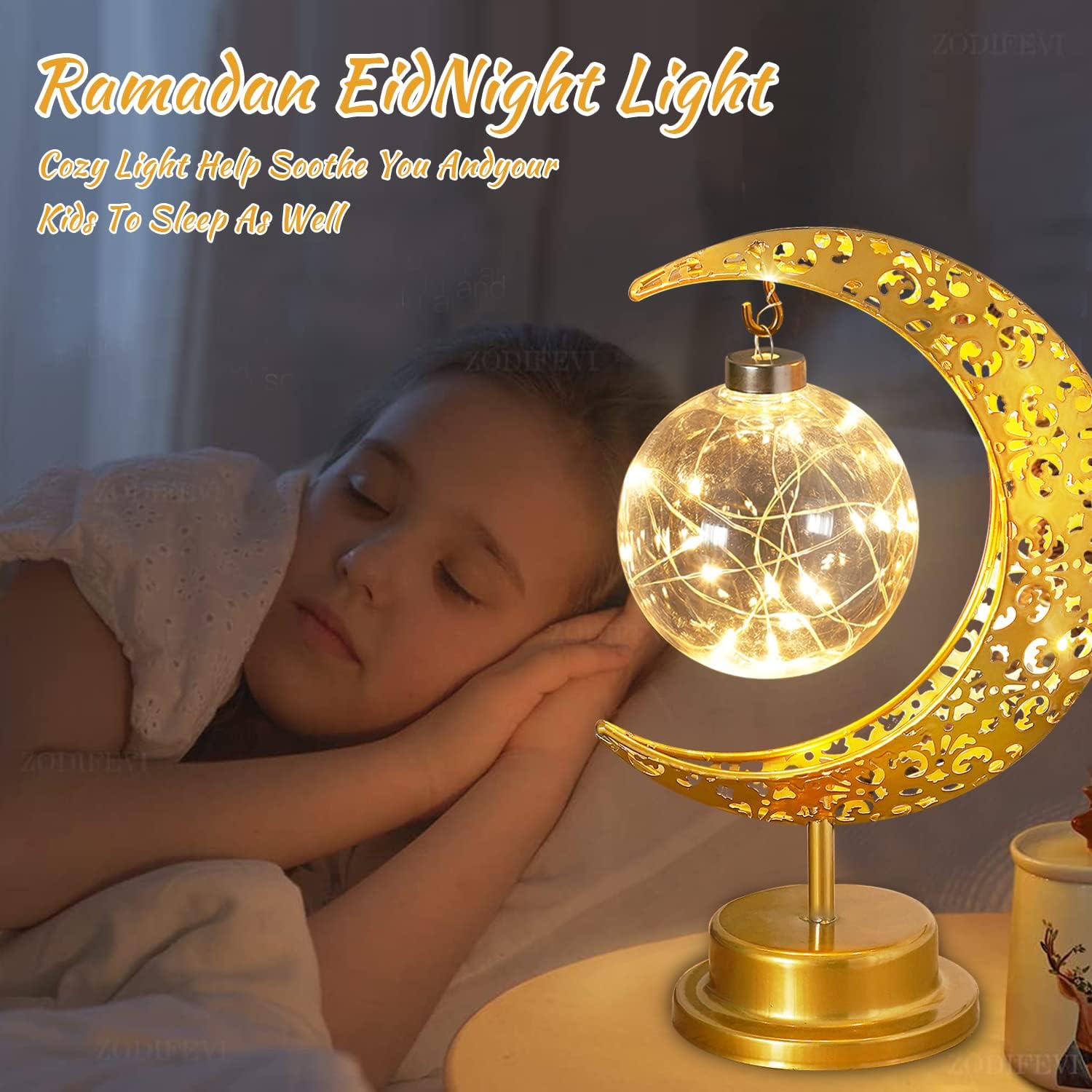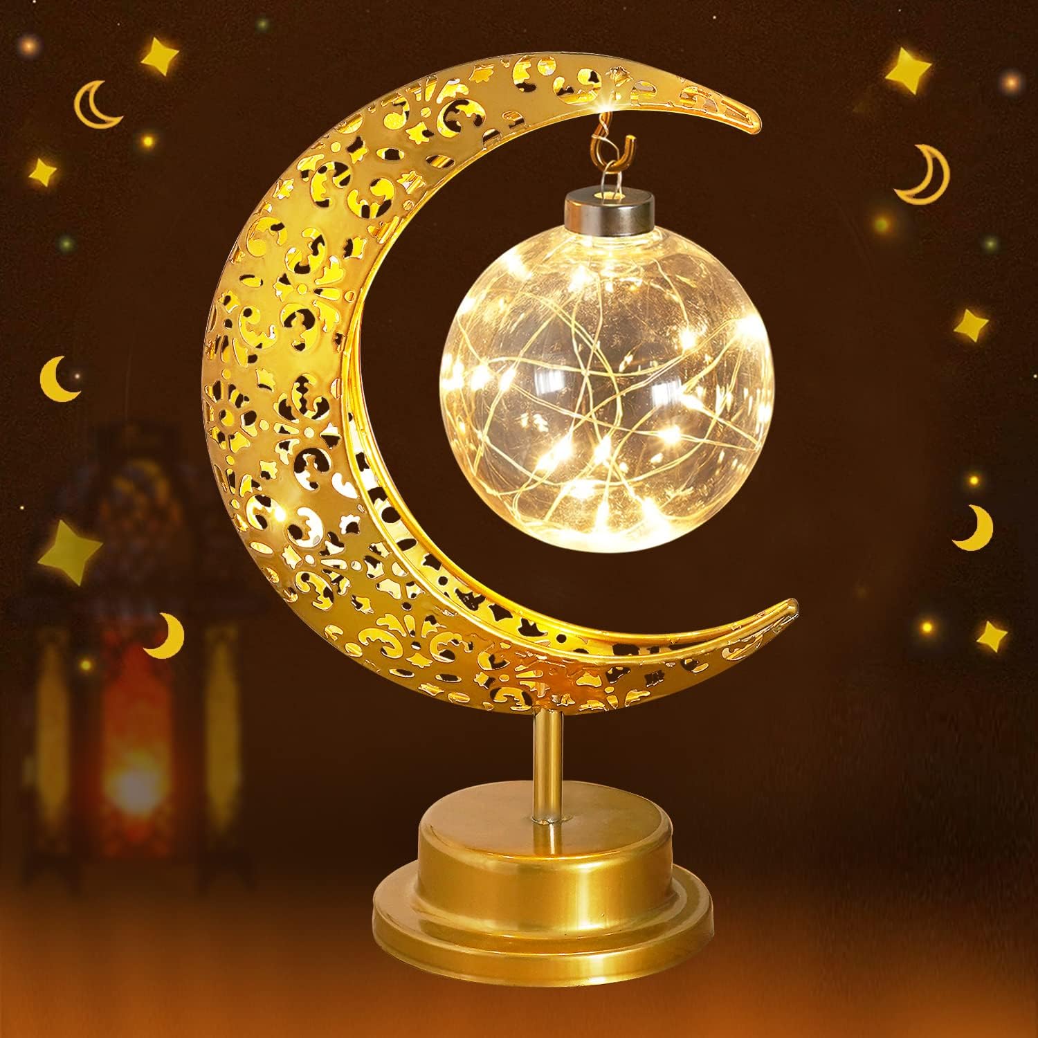 🌙Crescent Moon Lamp: This table lamp has a unique shape of a ramadan moon, which looks very beautiful and luxurious when it is lit. Not only can be used for festival decoration, but also can be used as bedside lamp to create different atmosphere.