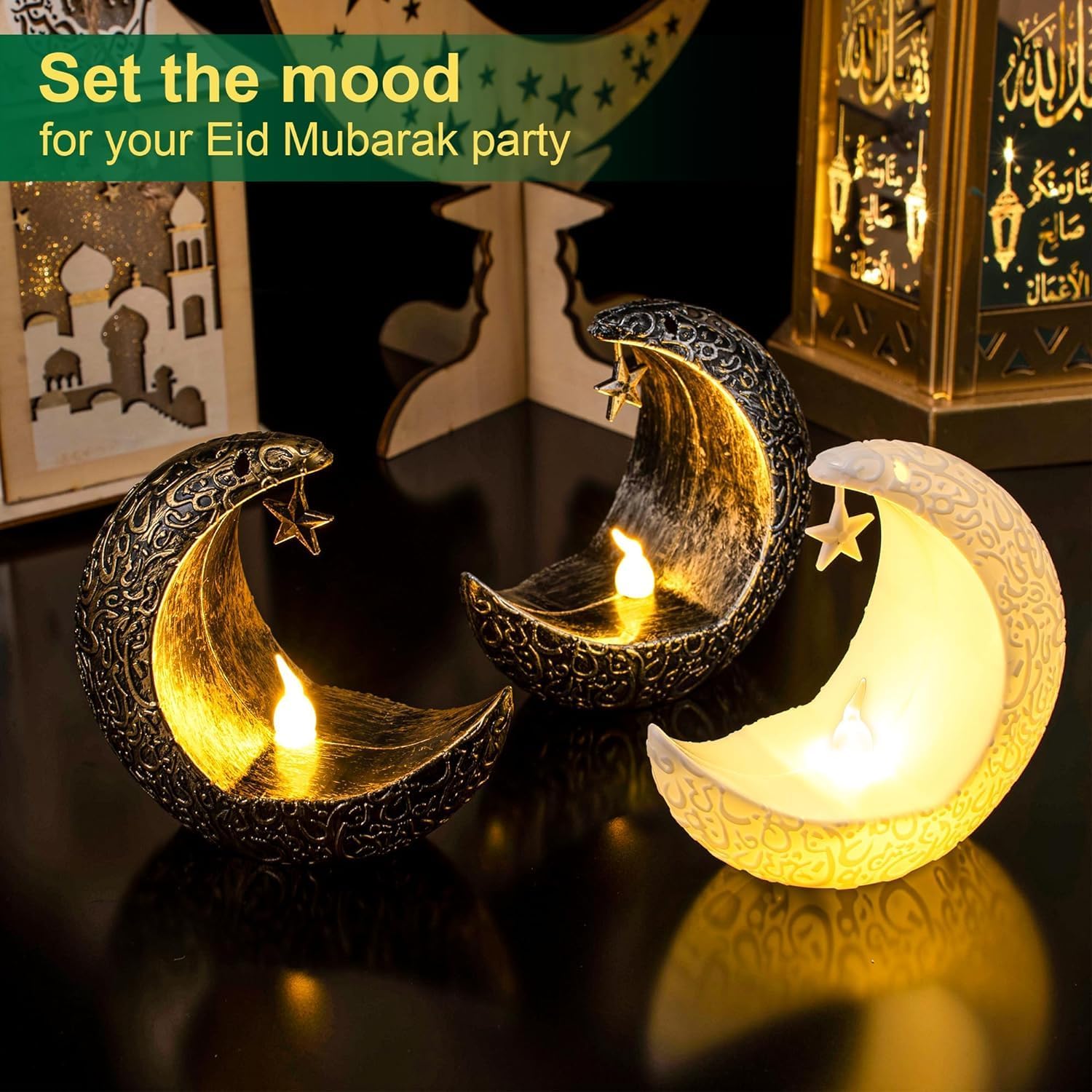 Package Included: You will receive 4 different colors Ramadan decorations moon shaped candle light, enough quantity, rich styles and proper size to make different decorations to celebrate Ramadan.