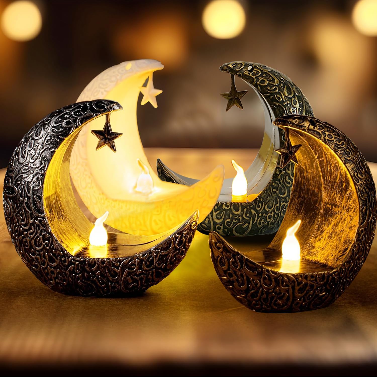 Yoawllty Ramadan Decorations Lights Moon Shaped LED Candle Light Ramadan Lamp for Bedroom Living Room 4 Pieces Ramadan Decorations for Home Table