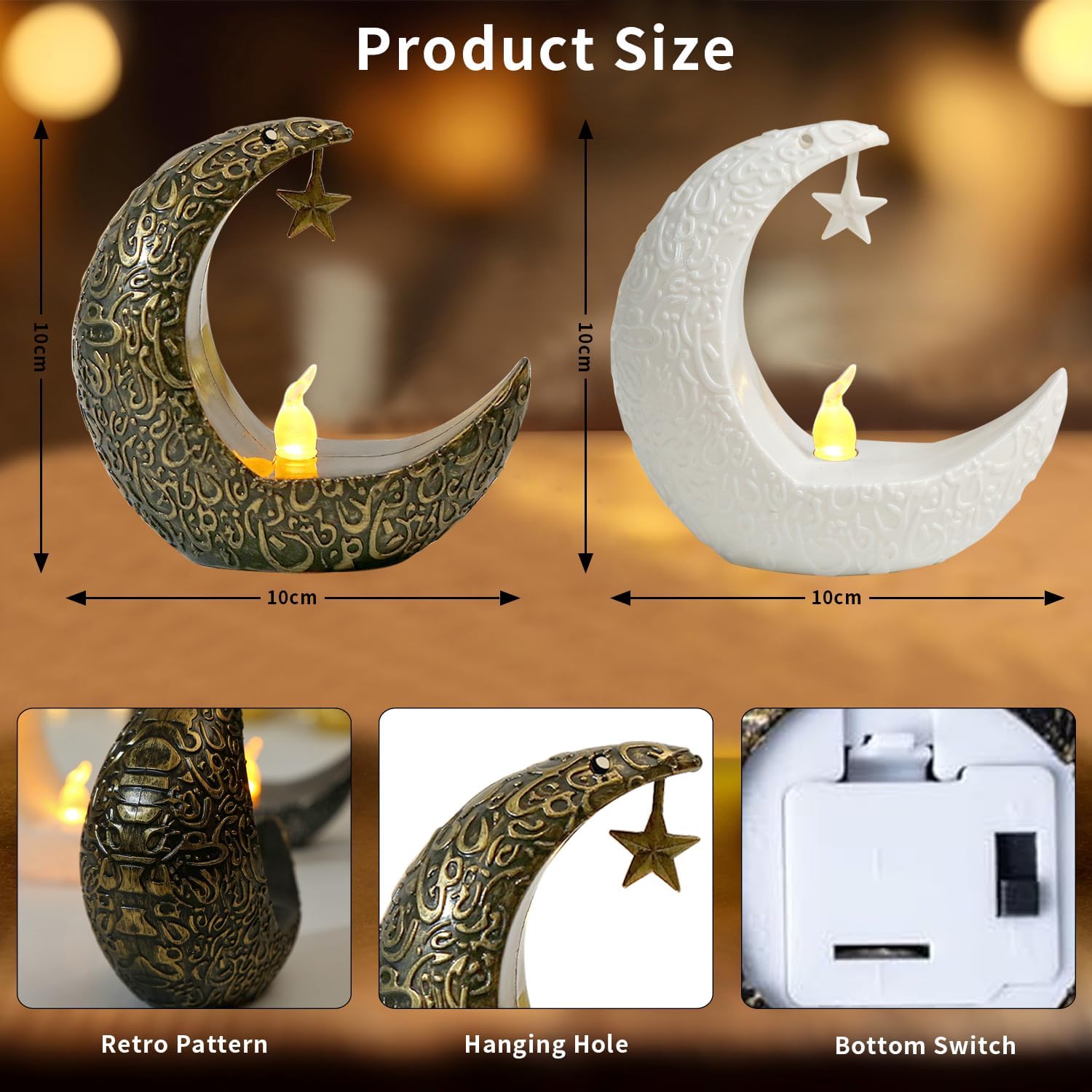 Material: This Ramadan decorations moon shaped candle light are made of quality plastic material, solid and long lasting, not easy to break, fade or deform, you can use them for a long time.