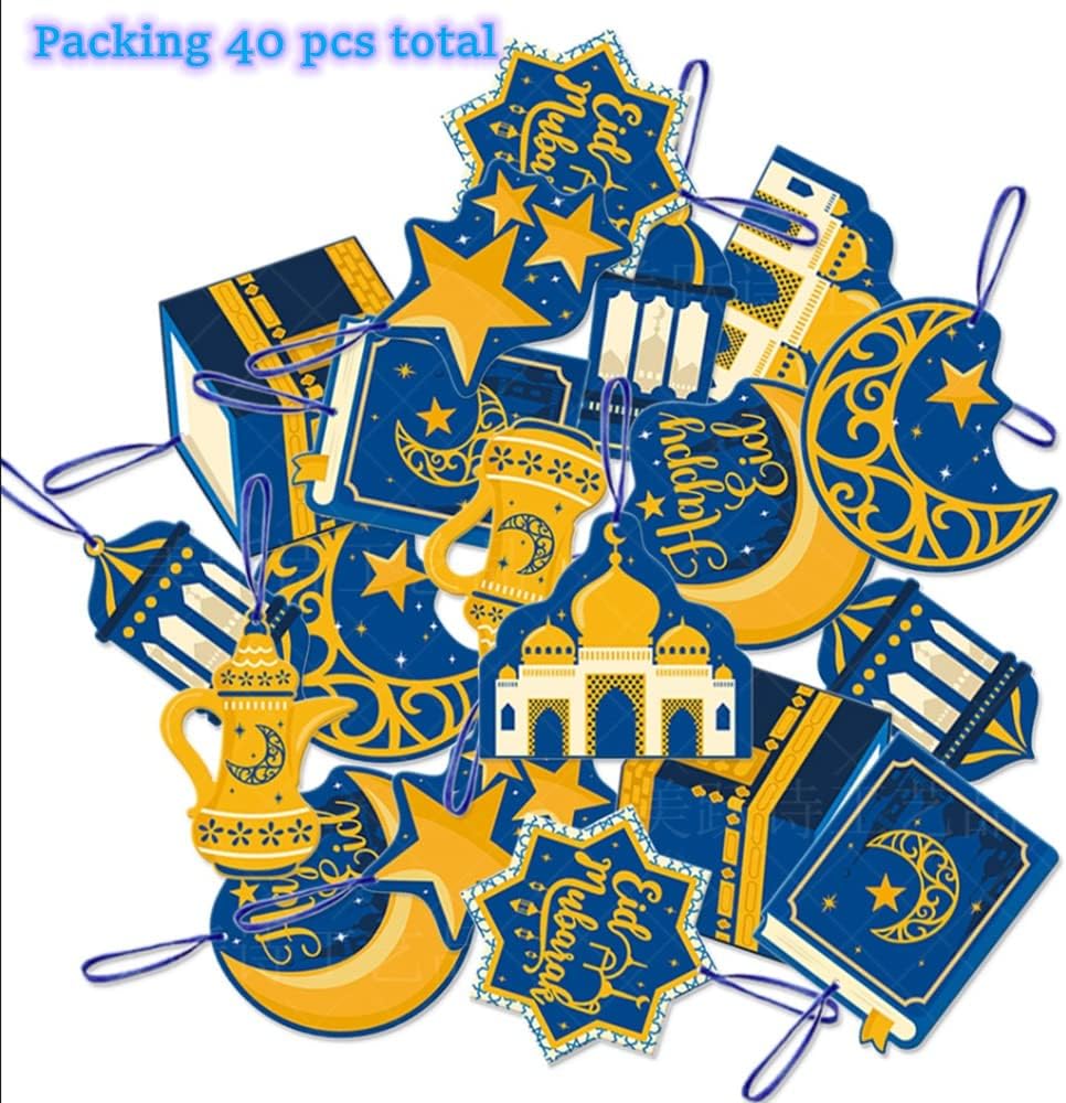 40 Pcs Eid Mubarak Ornaments Hanging Decorations Ramadan Mubarak Eid Decorations Ramadan Kareem Mosque Sign Wall Decoration Moon Star10 Style