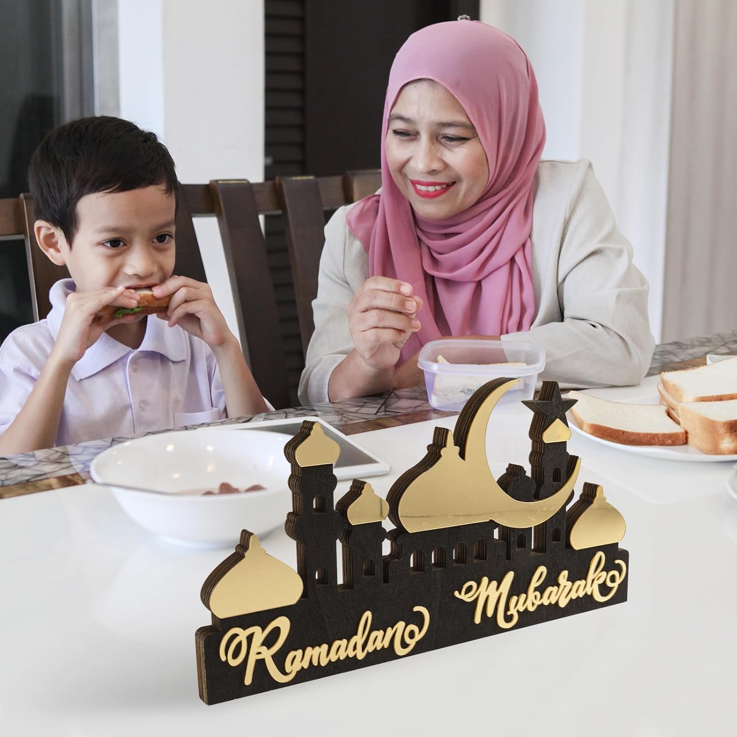 Pomefar Ramadan Decorations For Home, Ramadan Mubarak Standing Wooden Sign Centerpiece Table Living Room Ramadan Moon Art Gifts (Black and Gold) Tiokkss