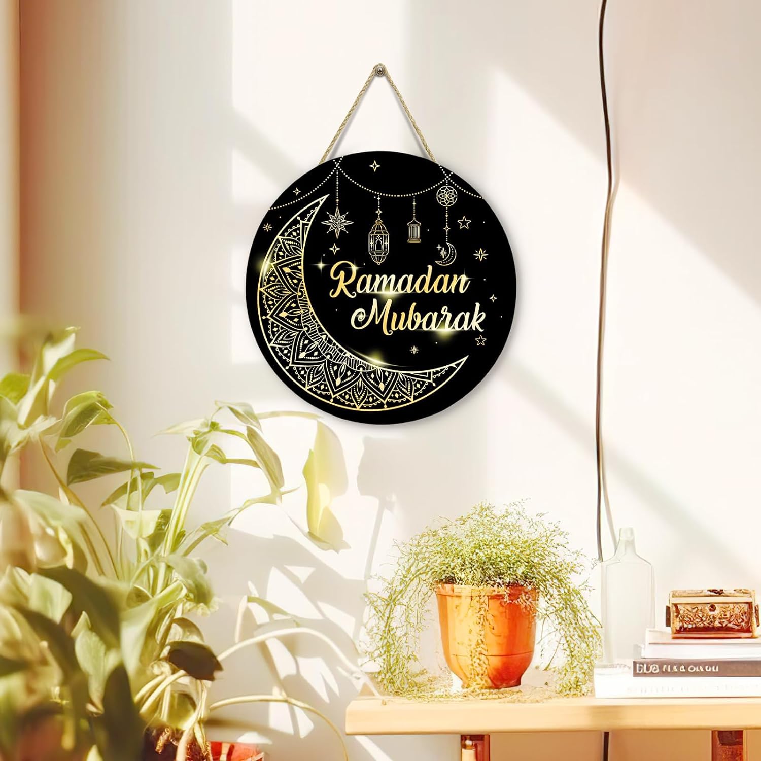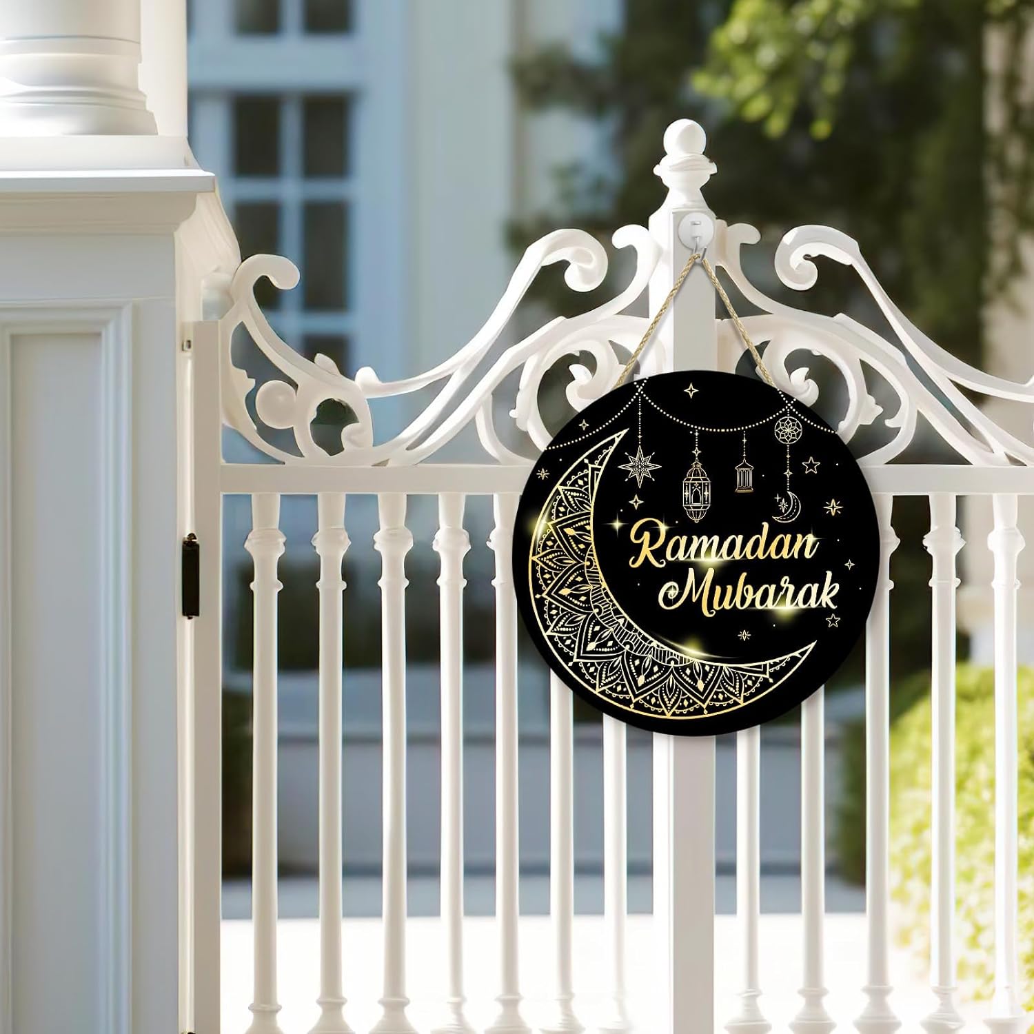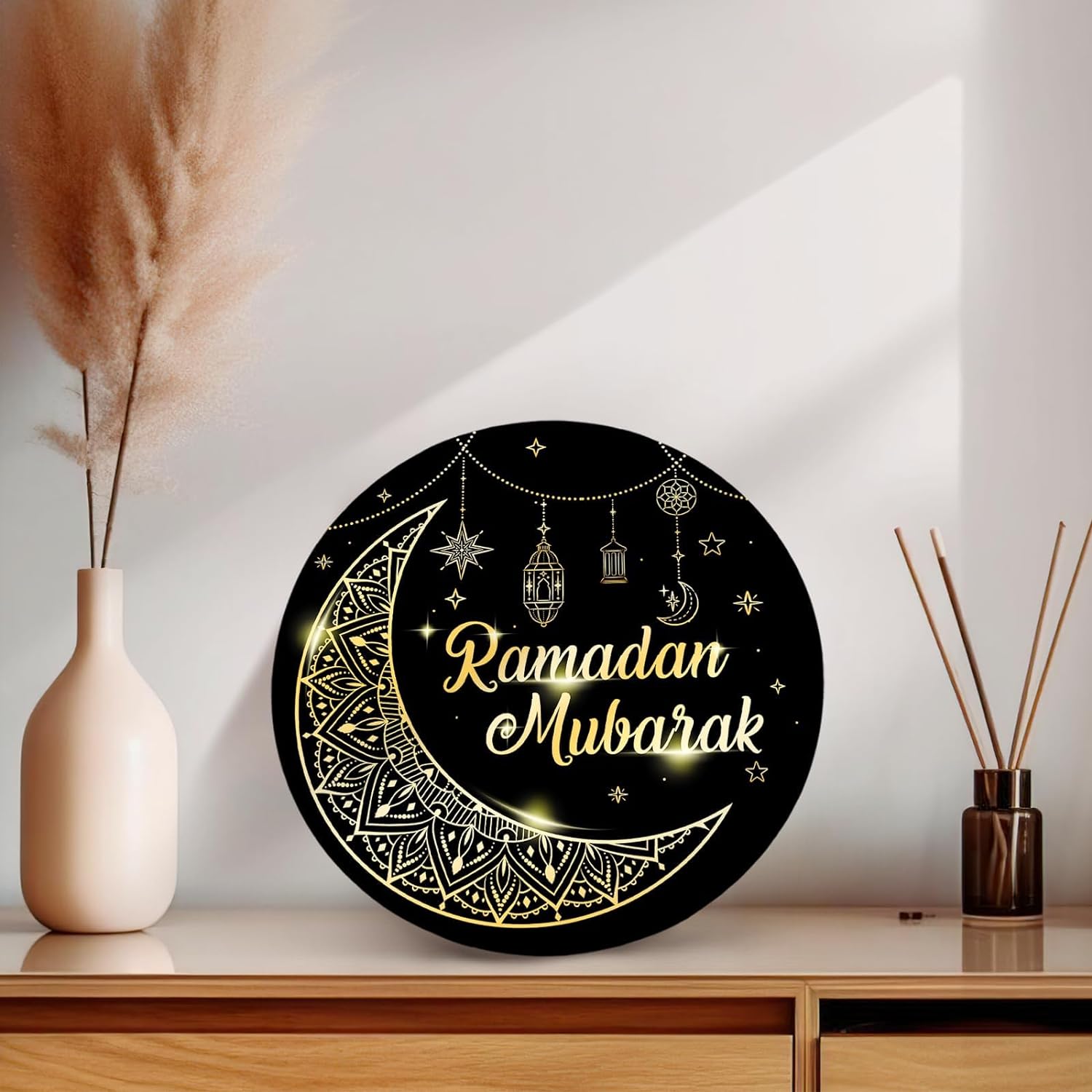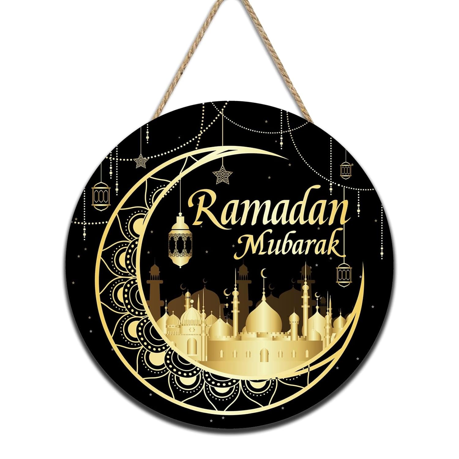đWide Application: Our Ramadan Mubarak wooden decoration is a round sign, designed with the word [Ramadan Mubarak] in the middle, which looks sophisticated and elegant, and is full of classic Ramadan element that can easily add more festive vibes to your.