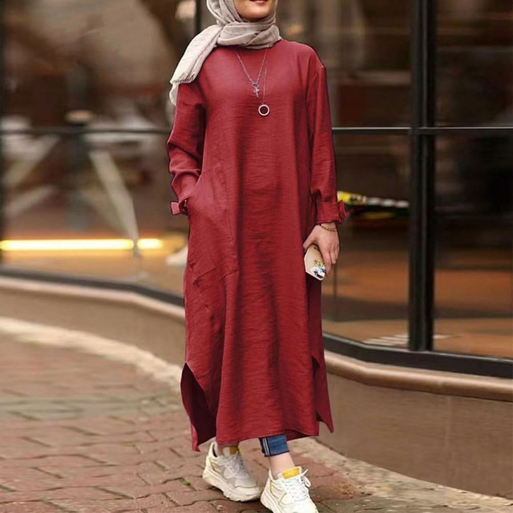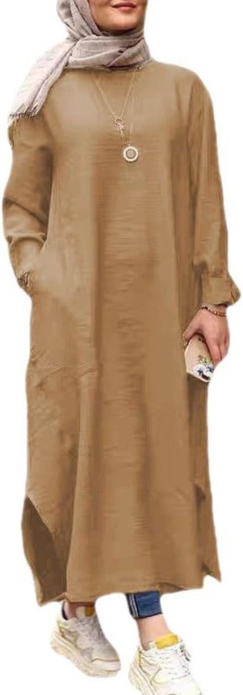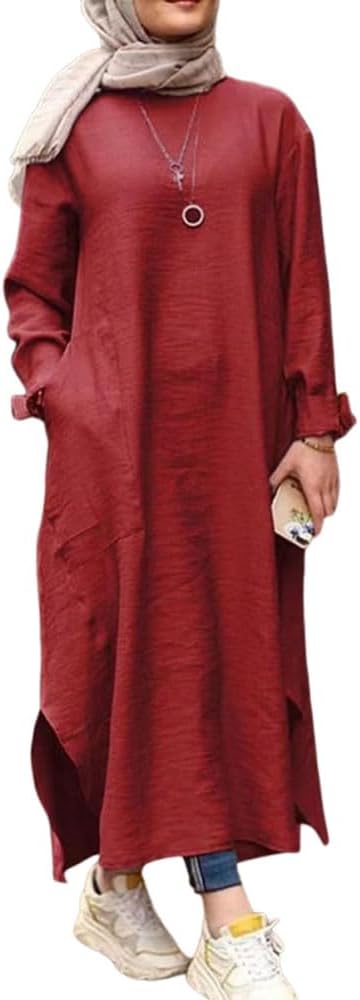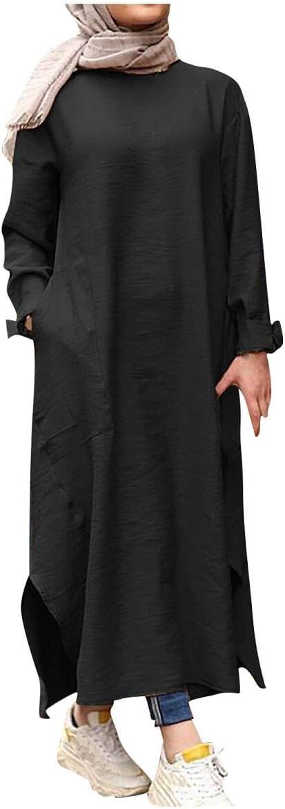 - Maxi-length Muslim Dress are designed with long sleeves for an alluring, modest appeal,Hem with slits at two sides, allows for a flexible movement when walking quickly
