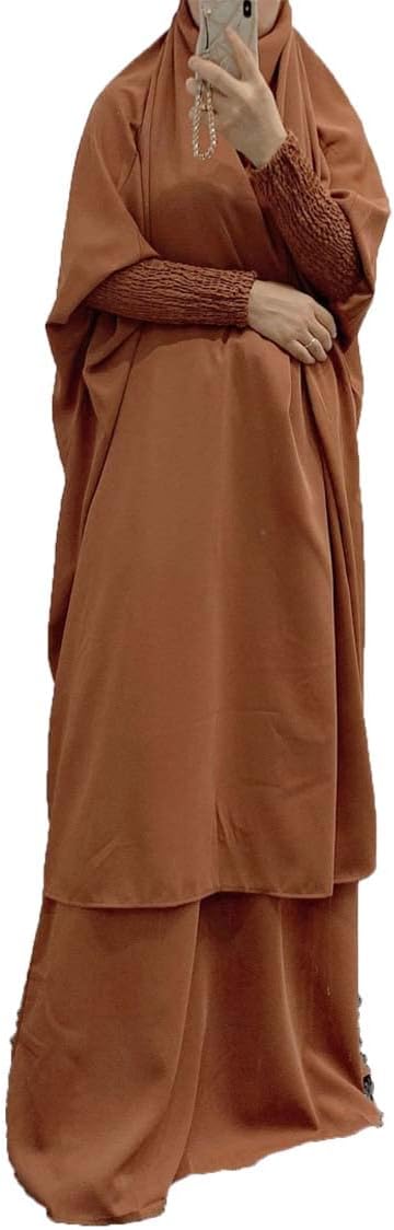 BOJON Muslim Two Piece Prayer Dress for Women Abaya Dress Islamic Middle East Dubai Turkey Maxi Abaya Kaftan with Full Length Hijab Dress