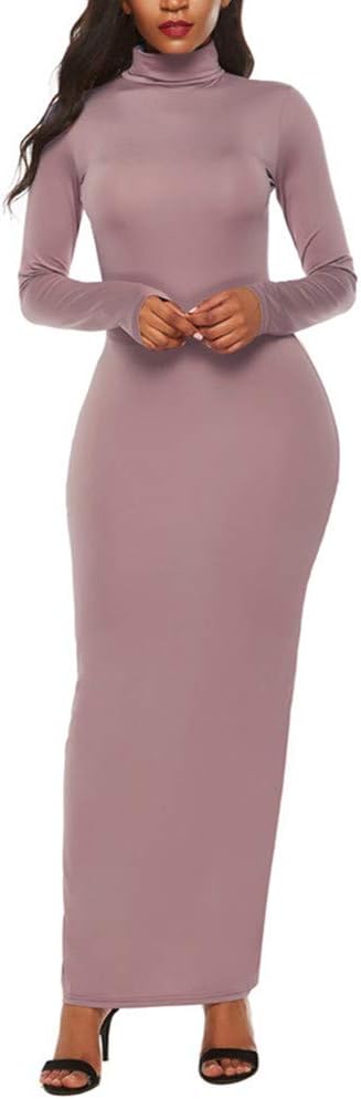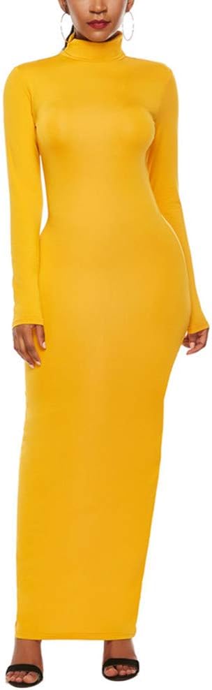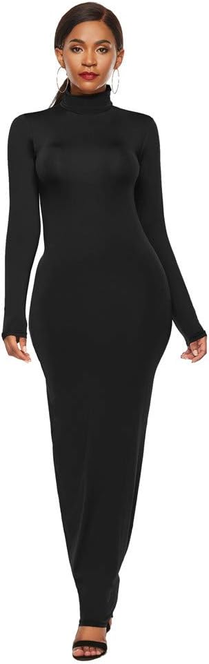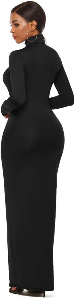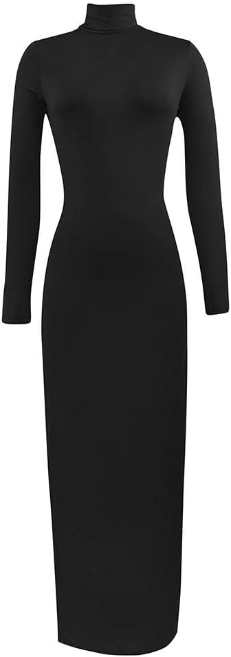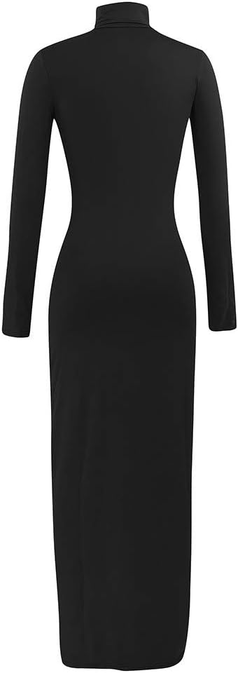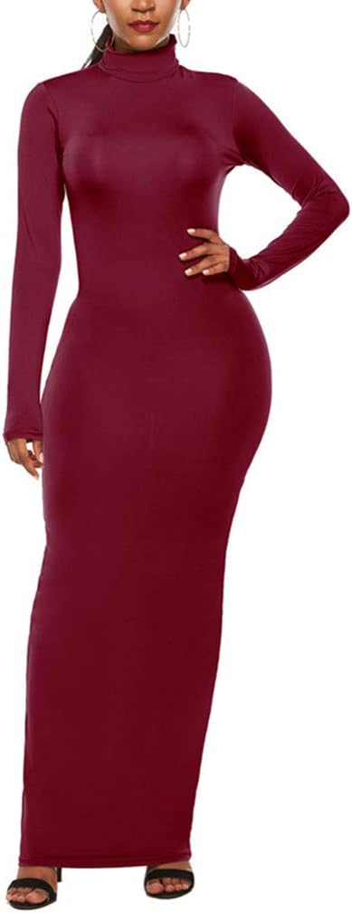 Fankle Women's Turtleneck Long Sleeve Bodycon Tunic Pencil Maxi Dress Casual Solid Basic Slim Stretch Club Long Dress Plus Size