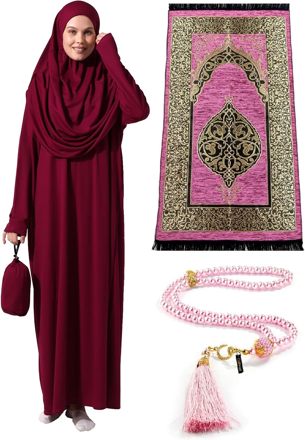 - ✔ MODEST & STYLISH ISLAMIC GIFT SET - Designed with a loose cut, our women prayer dress modestly conceals body lines, making it suitable for various occasions, not just for prayers. The dolman long sleeves allow for unrestricted movement, and the zero-type collar ensures maximum comfort. It is the perfect choice as an islamic gift for muslims, suitable for all occasions like Hajj, Umrah, Ramadan, Eid, Wedding, Nikkah or Birthday.