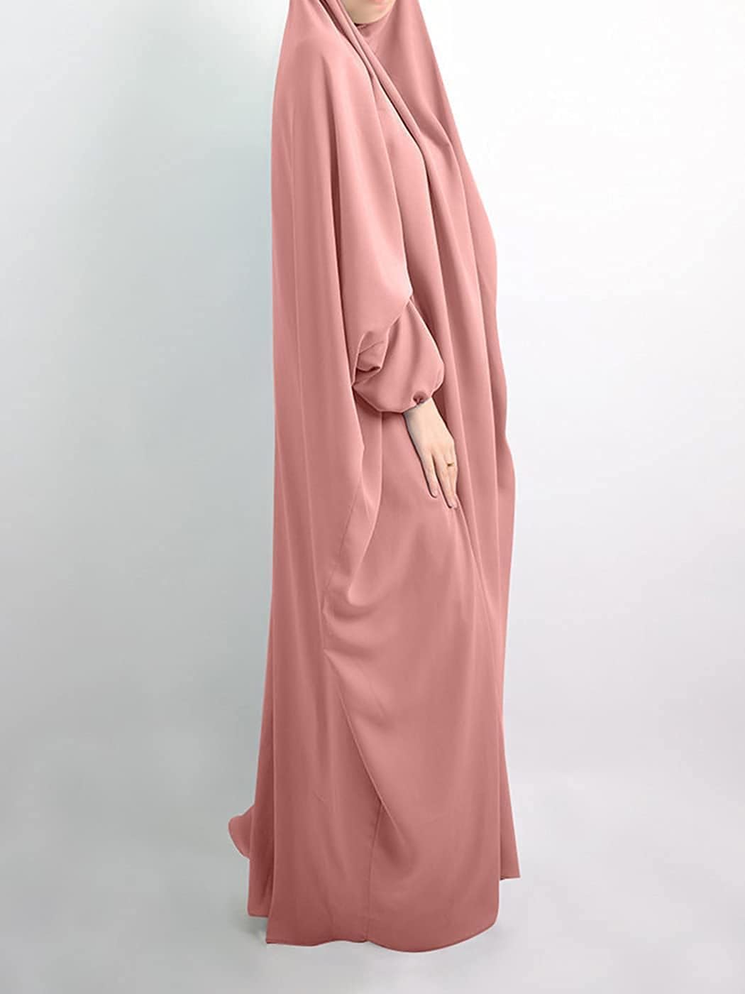 Women's Elegant Muslim One-Piece Prayer Dress, Full Cover Hooded Islamic Abaya Kaftan with Hijab Conservative Clothing Prayer Dress Ramadan for Ethnic, Evening, Party,Robe Women Dress(Pink)
