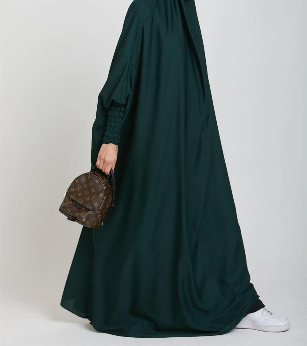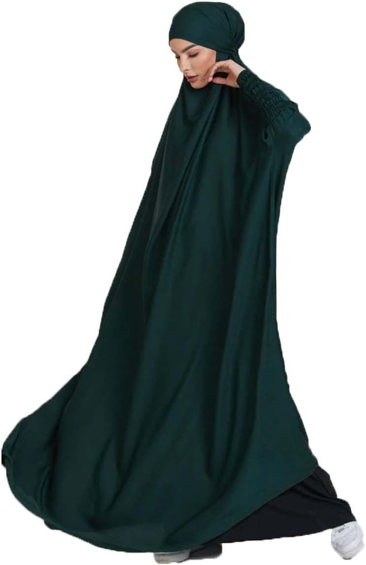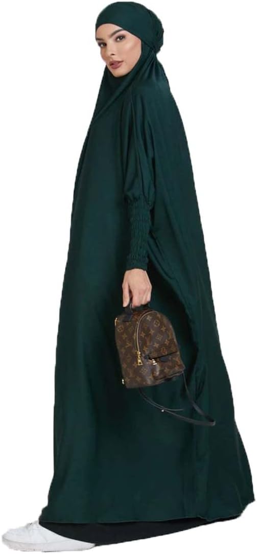 Women's Muslim One Piece Prayer Dress for Women Abaya Dress Islamic Middle East Dubai Turkey Maxi Abaya Kaftan with Hijab Dress in Full Length (Deep green), One Size