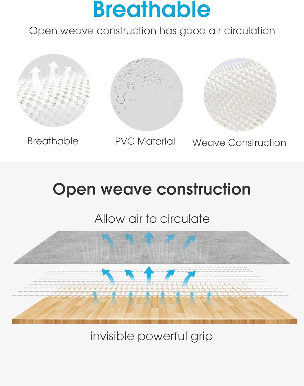 ⭐【BREATHABLE DESIGN】The open grid structure allows the carpet to breathe and protects the floor from daily scratches, and prevents dust from accumulating under the carpet. Good air circulation helps to make vacuuming easier.