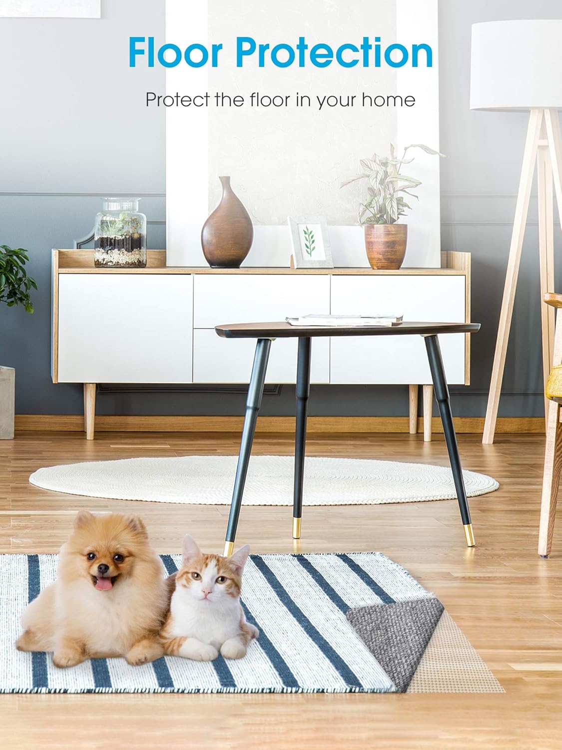⭐【UPGRADED VERSION】Our rug pad gripper has 2x the thickness of many other rug pads on the market. That means twice the floor protection, and twice the cushion and support! Plus, our rug pad creates a solid foundation to prevent the delicate fibers and piles on your rug from being crushed. It also acts as a buffer and protects your expensive wood flooring from the rough or scratchy undersides of your rug.