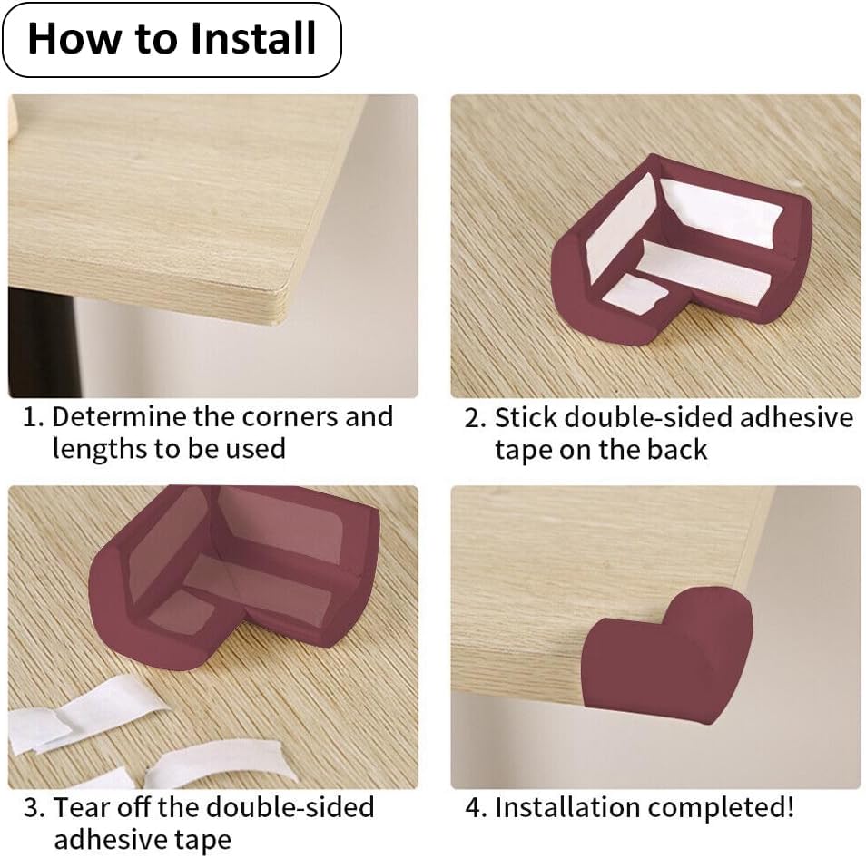 EFFORTLESS INSTALLATION: Our baby-proofing edge guards come with double-sided tape for easy application. Simply clean the furniture corner, peel off the tape backing, align the guard with the corner, and press it gently. The entire process takes less than a minute.