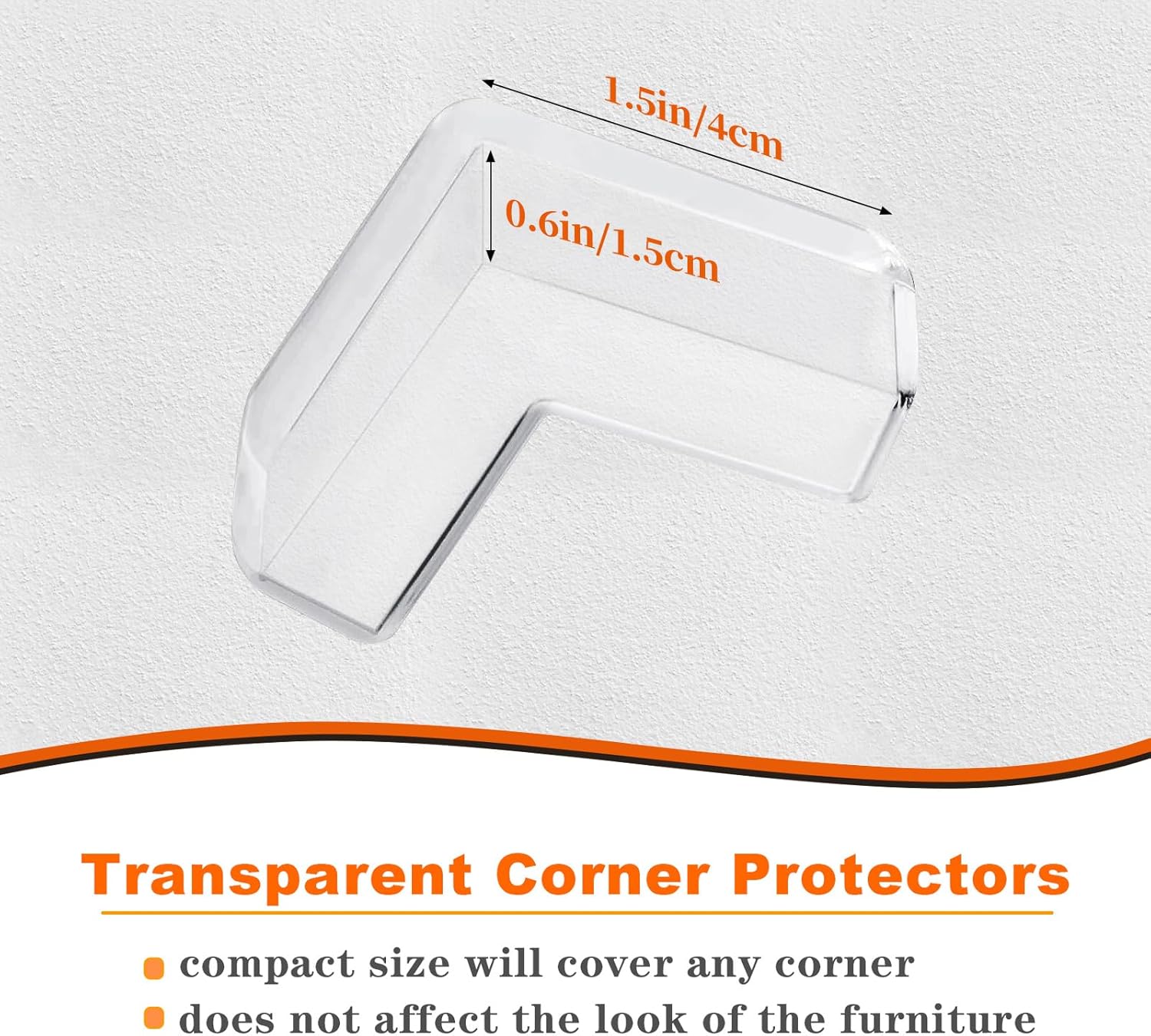 Material: (function(f) {var _np=(window.P._namespace("DetailPageProductOverviewTemplatesJava"));if(_np.guardFatal){_np.guardFatal(f)(_np);}else{f(_np);}}(function(P) { P.when('A').execute(function(A){ A.on('a:truncate:po-attribute-truncate-2:updated', function(data) { var isTruncated = !data.truncateInstance.getIfTextFits(); var seeMoreElement = document.getElementById('po-attribute-see-more-id-2'); if(seeMoreElement) { seeMoreElement.style.display = isTruncated ? '' : 'none'; } }) });})); Clear Corner Protectors comes with Pre-applied 3M Adhesive tape, simply peel tape backing, and place at the desired cornerClear Corner Protectors comes with Pre-applied 3M Adhesive tape, simply peel tape backing, and place at the desired corner See more